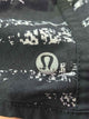 3 inch inseam, stretchy waistband, black/white abstract design, breathable fabric