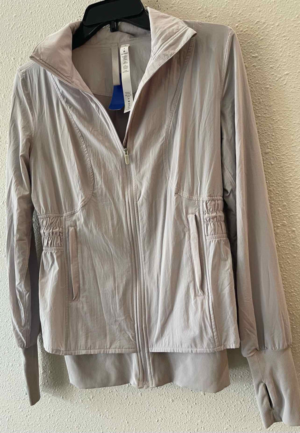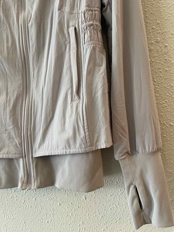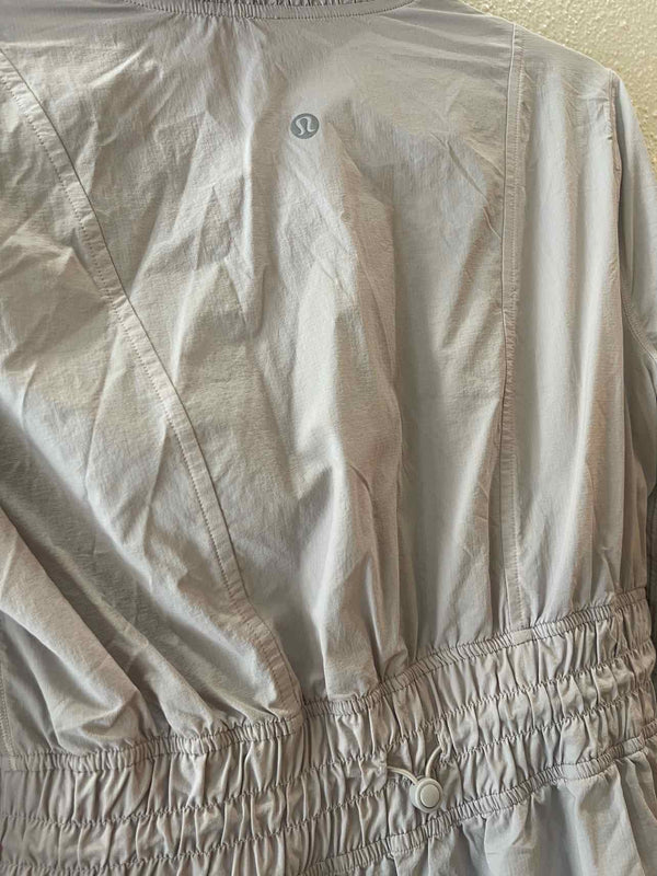 The light grey hue of the Lululemon grey Size 4 Jacket brings a versatile, modern touch to your wardrobe. This pre-loved designer piece, available through authentic luxury resale, is a chic addition for those who value women's consignment fashion. Designed with long sleeves and a windbreaker style, the zip-up jacket features thoughtful details like a cinched back and back neck, blending both style and function. Whether you're layering for an active day or adding a refined layer to your everyday look, this Lululemon favorite in size 4 offers both quality and comfort in a neutral tone.