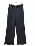 slacks, hidden clasp, front pockets, mini vertical red lines, wide leg,