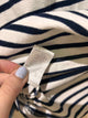 quarter sleeve, t-shirt dress, horizontal black stripes, k/l, wide neckline