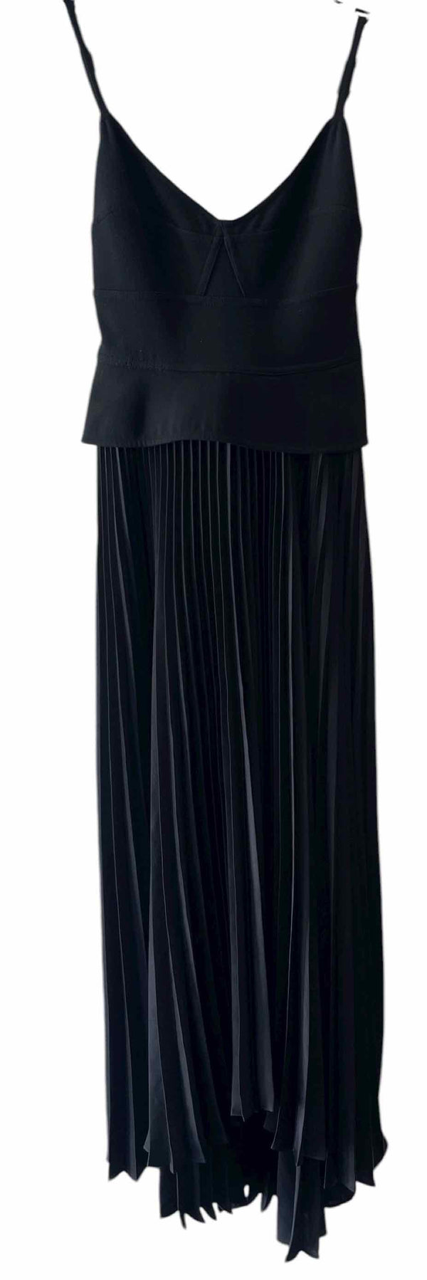 Featuring a striking below-knee silhouette and an asymmetrical pleated skirt, the A.L.C. Black Size 4 Dress brings a modern touch to authentic luxury resale. This pre-loved designer piece showcases a structured peplum bustier bodice with a back zip closure and a chic adjustable spaghetti strap for a tailored fit. Its solid black hue and distinctive Gwen pleated design make it a unique find in women’s consignment fashion. Carefully curated and offered in very good condition, this dress is perfect for refreshing your wardrobe with high-end style from A.L.C.