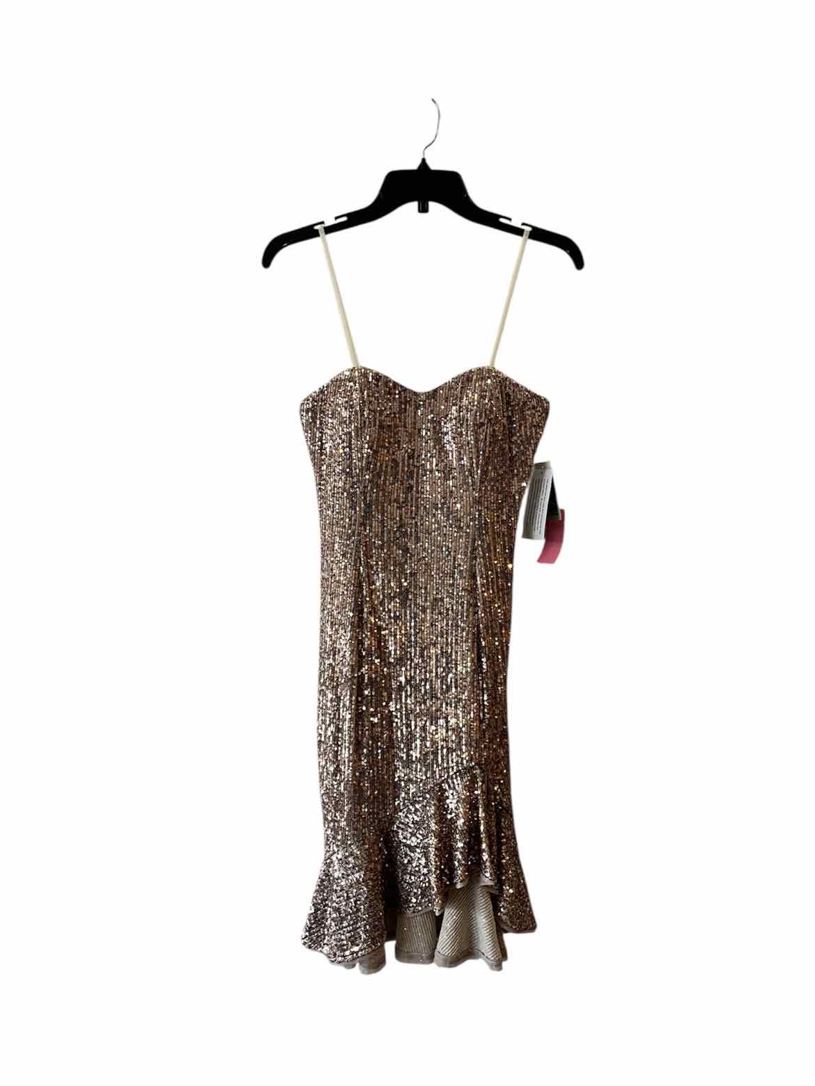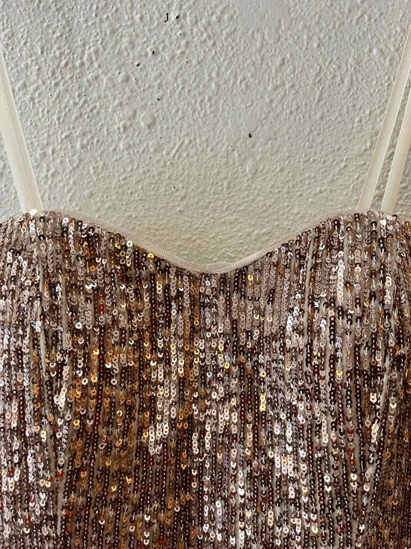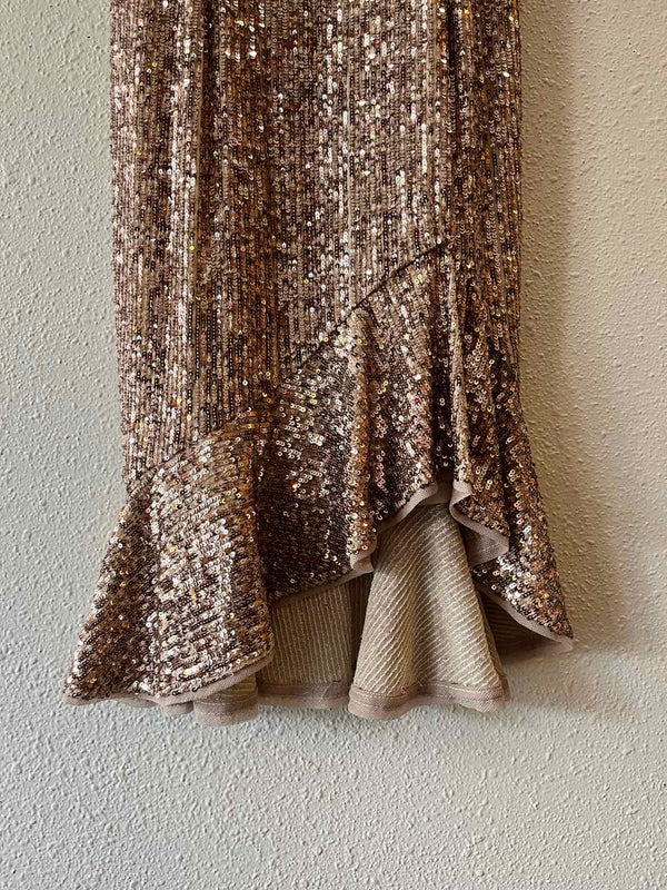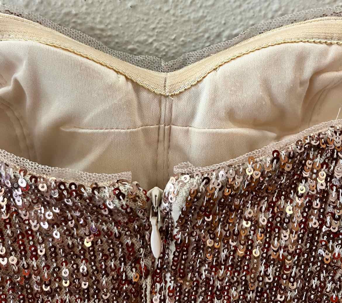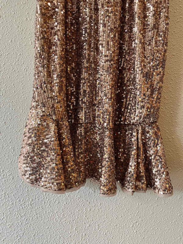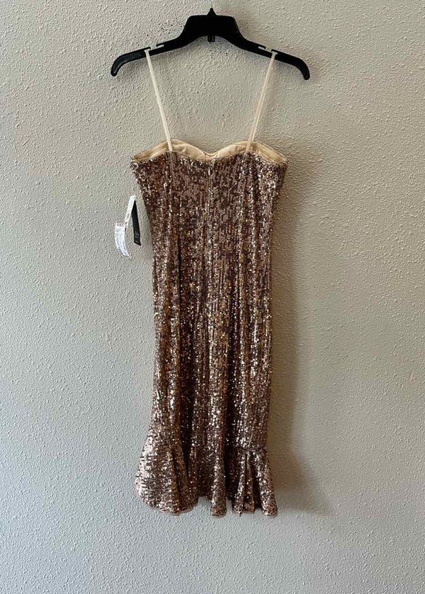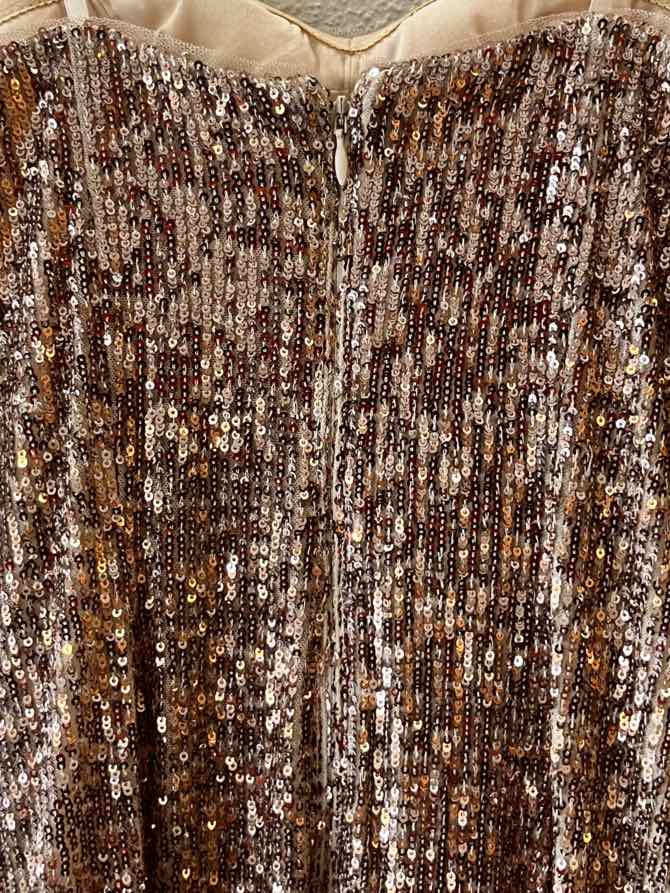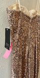 NWT Strapless, mini, rose gold sequin, asymmetrical flirty hem, dress