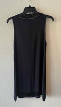 Sleeveless mini, black with beaded detail at vneckline down center, silk blend, dres