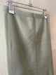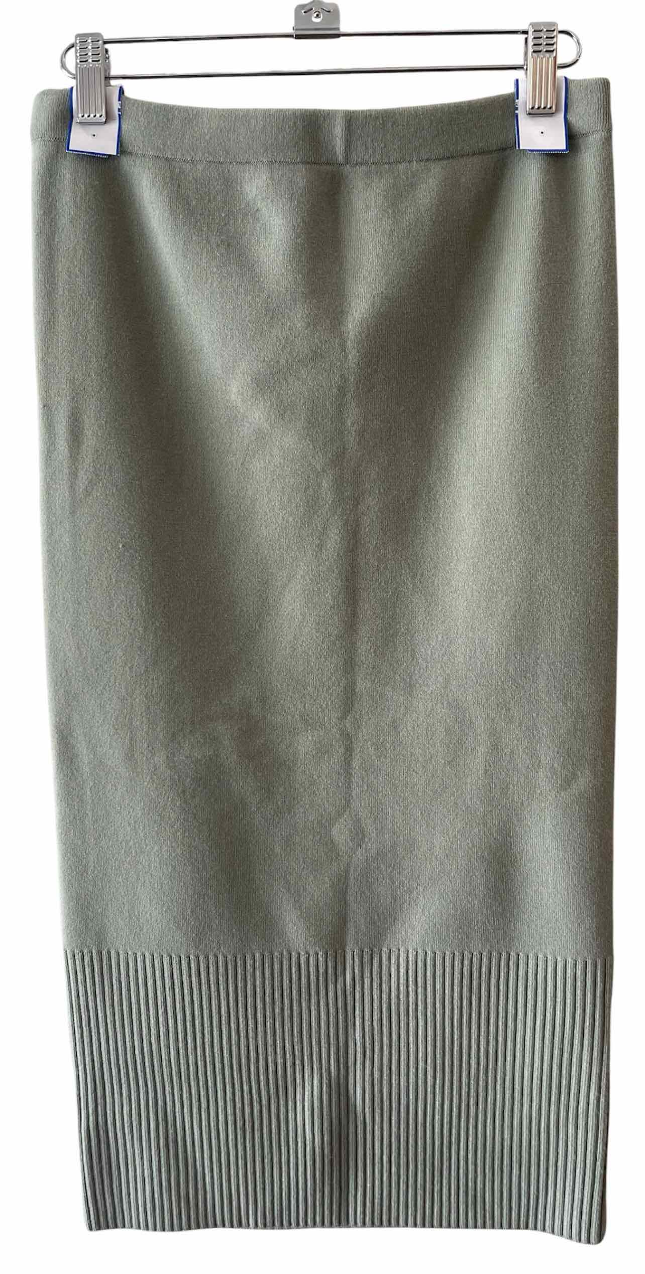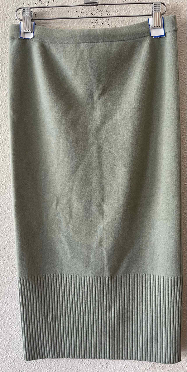 knee length,slip on,solid sage,wool blend,fitted midi skirt,elastic waist,rib knit at bottom