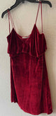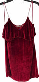 sleeveless,v neck,solid wine,Bess silk velvet ruffle slip dress,ruffle bust detail,lined