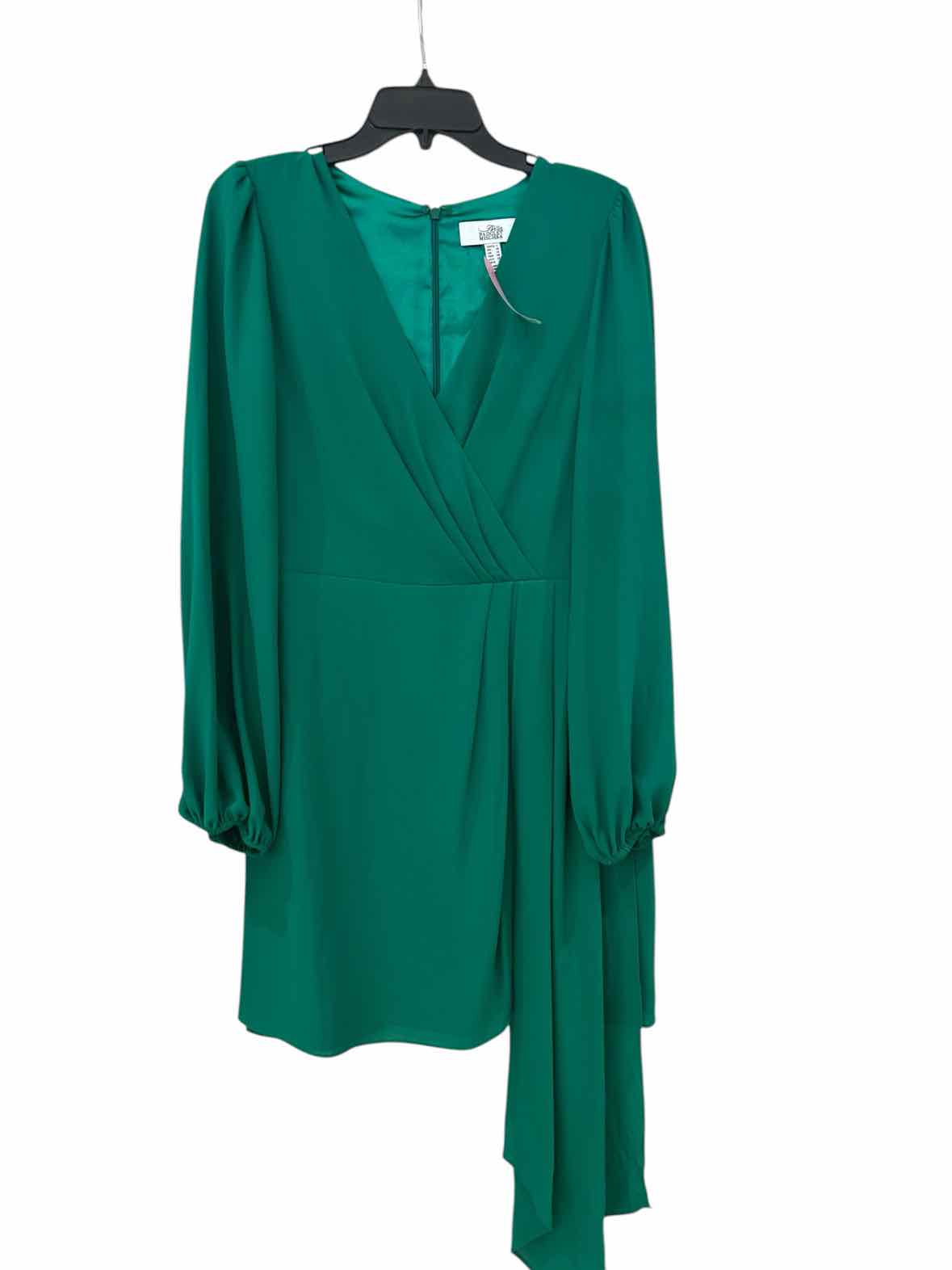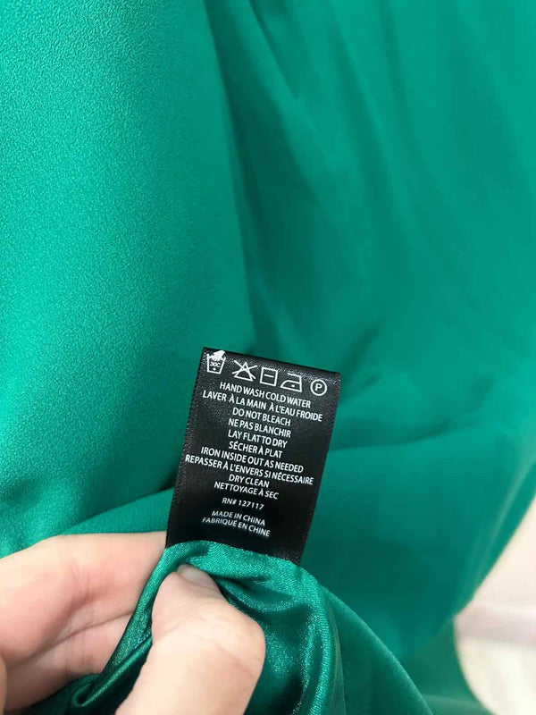 The jade hue of this Badgley Mischka Jade Size 8 Dress brings a fresh twist to women’s consignment fashion. With a mini silhouette and elegant long sleeves, this authentic luxury resale piece features a wrap top and v-neckline for timeless appeal. Asymmetrical pleated hem detailing and elastic cuffs add a refined touch, while its polyester fabric ensures comfort and durability. This pre-loved designer dress is a chic option for those seeking unique, high-quality additions to their wardrobe through trusted resale. Own a piece from a renowned brand with this carefully curated dress.