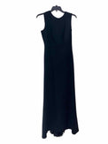 sleeveless, maxi, v back, zip up back. pleated center back part, scoop neck, high neck, maxi