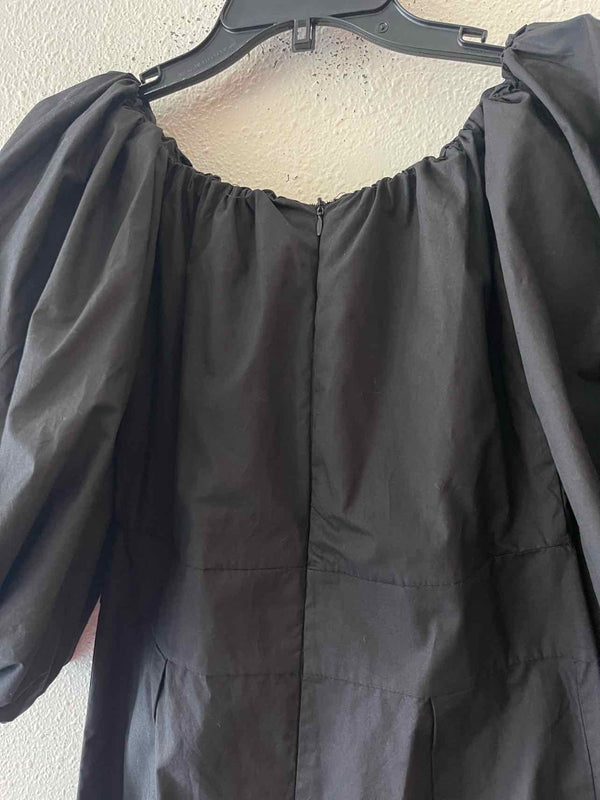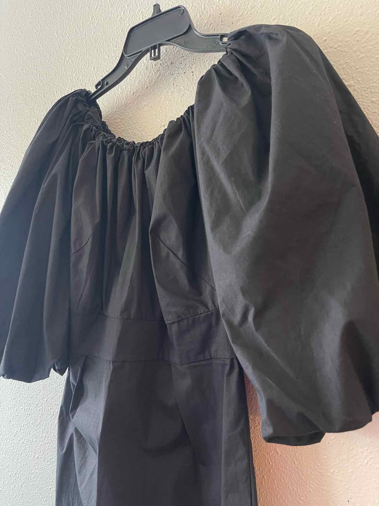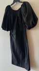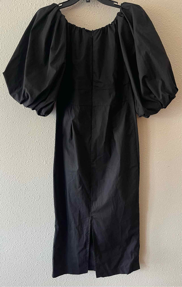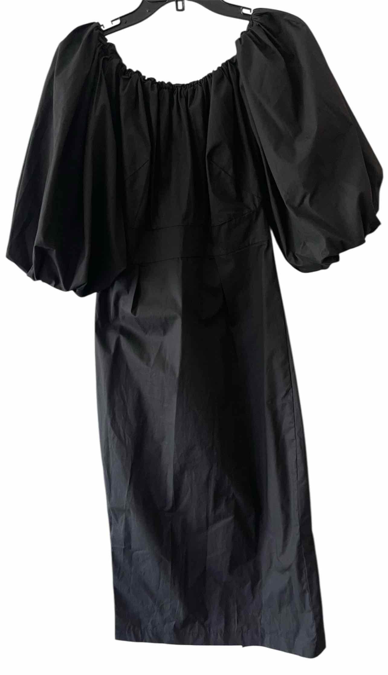 NWT,quarter sleeve,below knee,solid black,puff sleeve midi dress,elastic neck band,back zip closure,elastic cuff puff sleeve,back slit hem