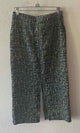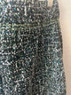 high rise,knee length,black multi,tweed knit midi skirt,elastic drawstring waistband,front and back silt hem
