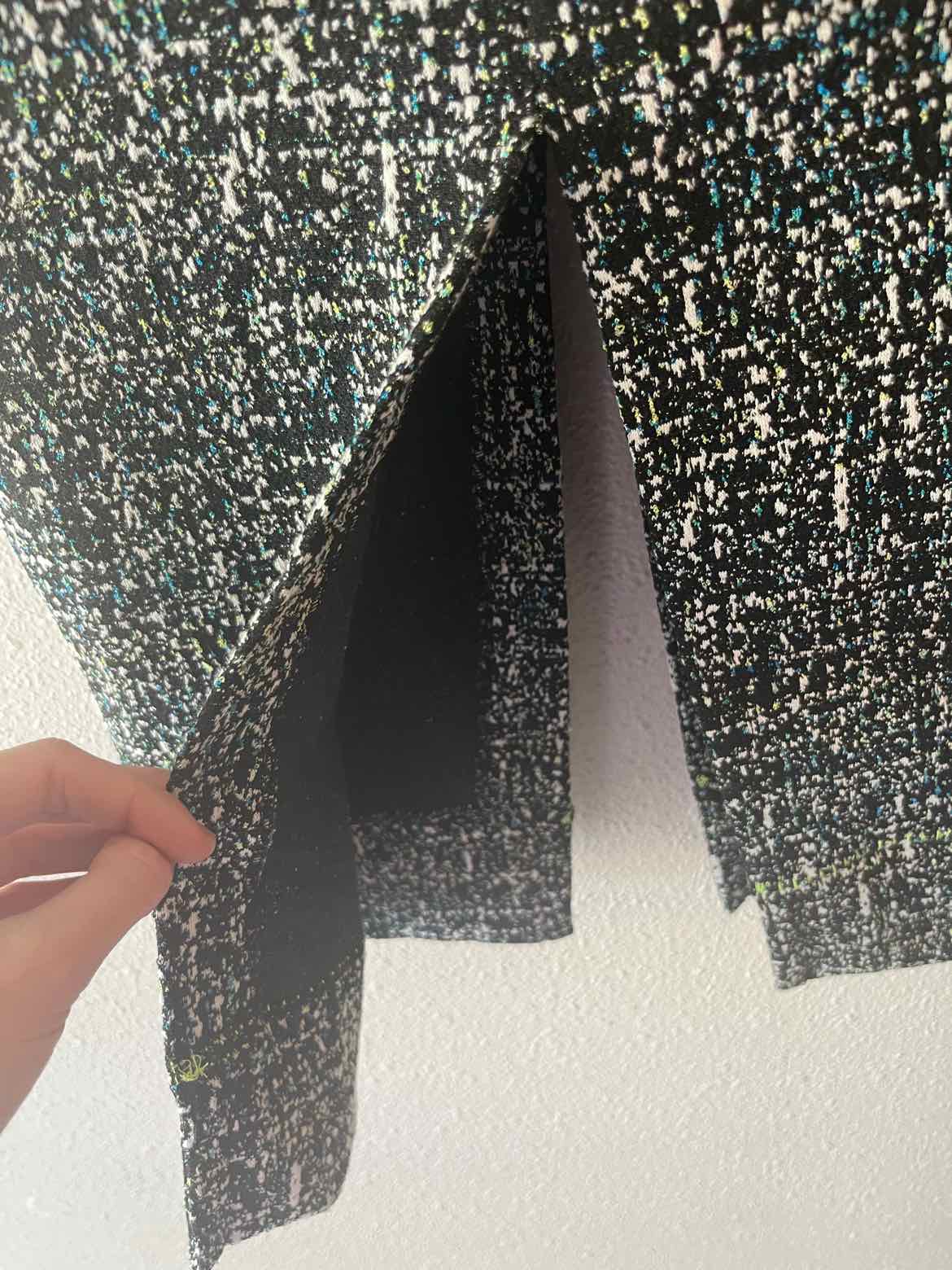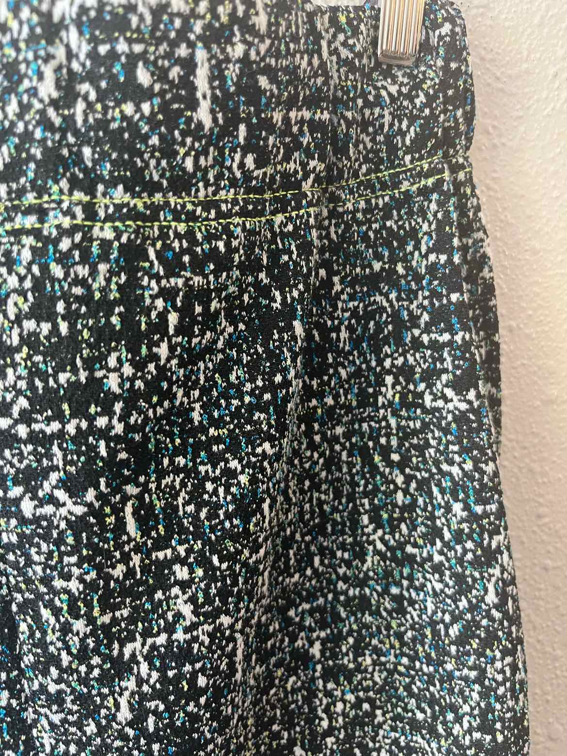 The color-rich pattern of this Bimba y Lola Black Multi Size XS Skirt brings a unique twist to women’s consignment fashion. Designed with a black multi tweed knit, this pre-loved designer piece features a high rise and knee-length silhouette, enhanced by a comfortable elastic drawstring waistband. Both front and back slit hems add ease of movement and a chic detail, making it a notable find in authentic luxury resale. Offered in very good condition, this skirt from Bimba y Lola is an exceptional choice for those seeking quality and style from trusted designer names.