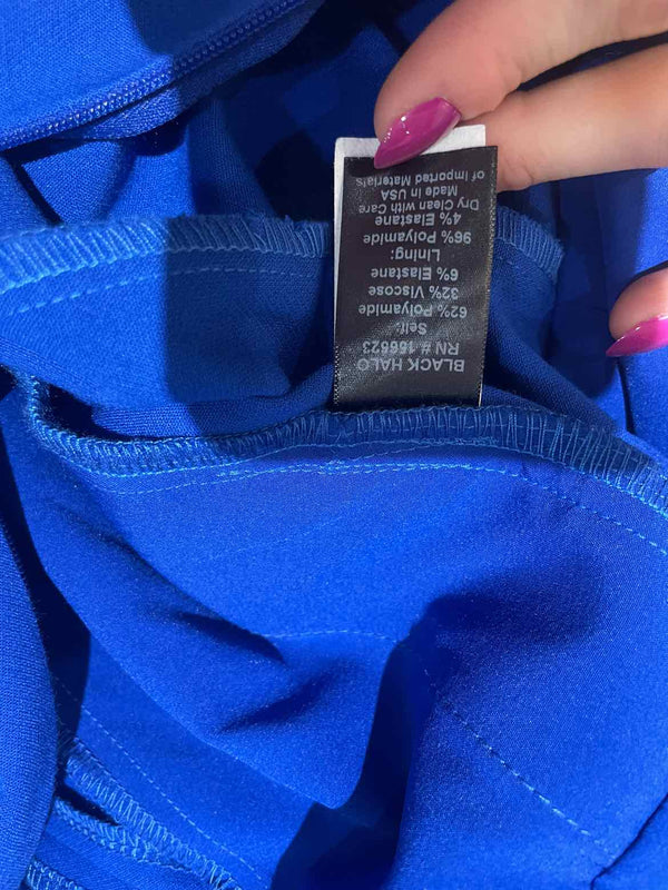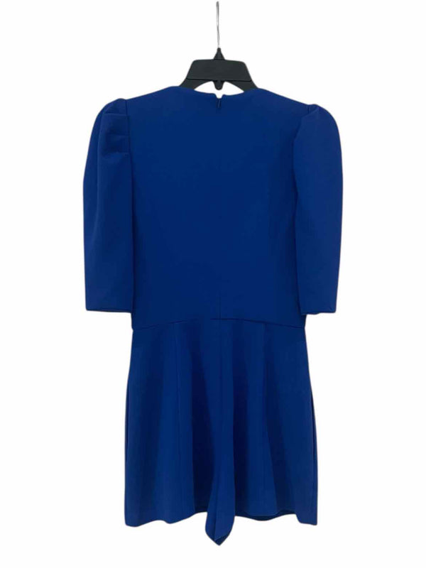 The royal blue hue of the Black Halo Royal Blue Size 2 Romper brings a vibrant touch to any women's consignment fashion collection. This pre-loved designer piece, available through authentic luxury resale, features a chic round neck and distinctive elbow-length open puff sleeves. The tailored silhouette, complete with shorts and a zipper up the back, ensures a refined and polished look. Crafted from a polyamide blend, this romper is offered in new condition with original tags, making it a beautiful addition for those who appreciate quality and style in pre-owned designer finds.
