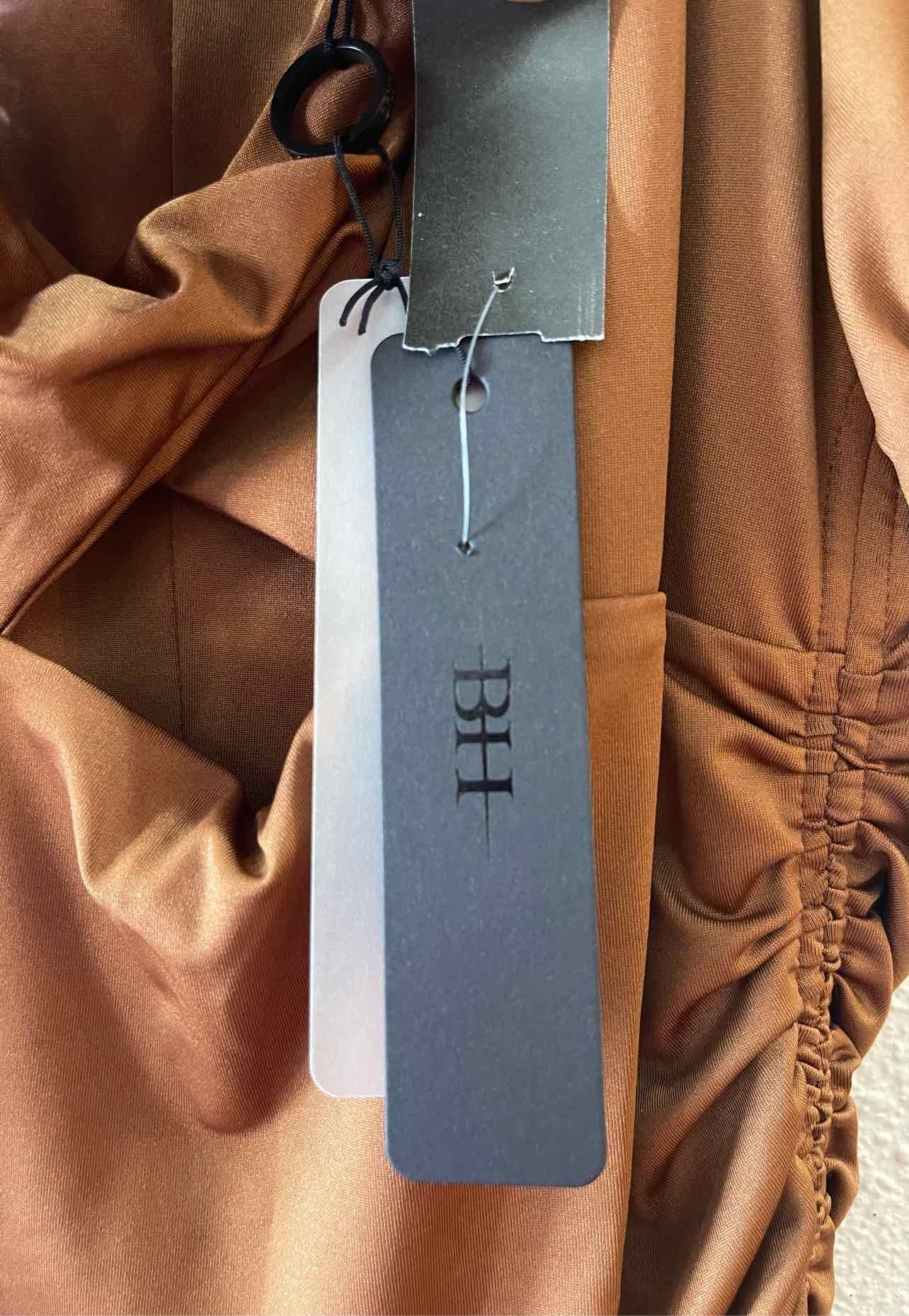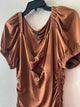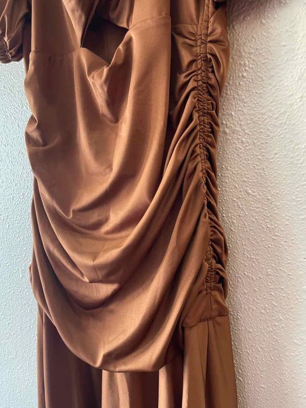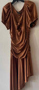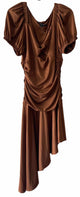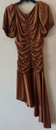 NWT Short sleeve, solid brown, symmetrical hem, ruched sides, slinky dress with small cutout