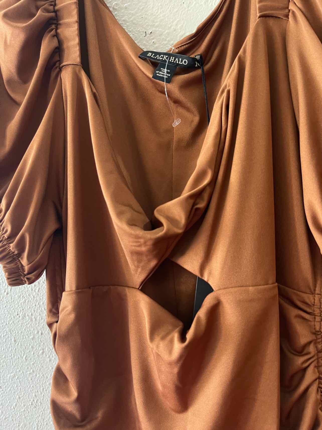 Featuring a chic silhouette, the Black Halo Tan Size 10 Dress brings a refined touch to authentic luxury resale. This pre-loved designer piece stands out with its short sleeves, ruched sides, and a symmetrical hem, finished with a subtle cutout for added visual interest. Presented in a solid tan hue and offered in new-with-tags condition, it offers a beautiful option for those seeking unique women’s consignment fashion. Carefully curated in New Orleans, this dress blends the allure of contemporary style with the value of trusted designer craftsmanship.
