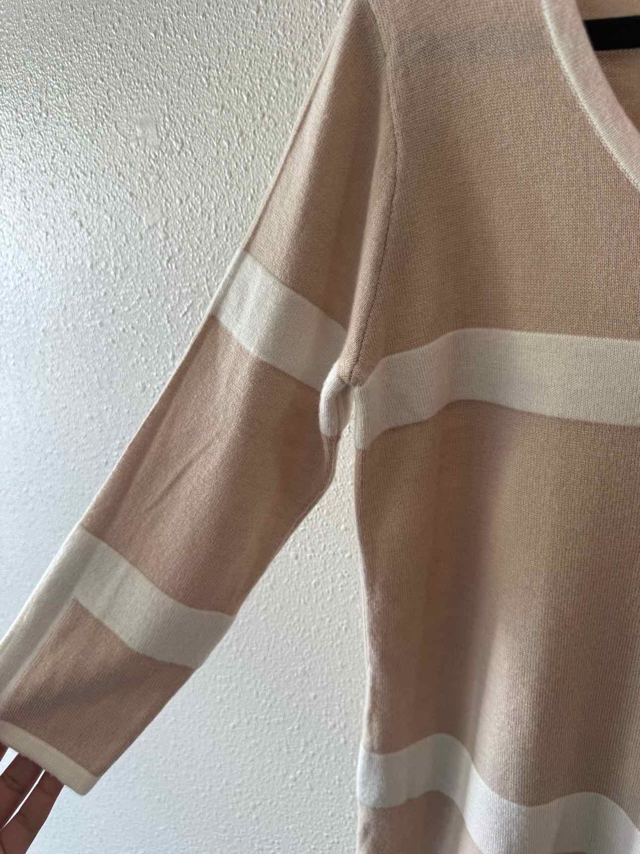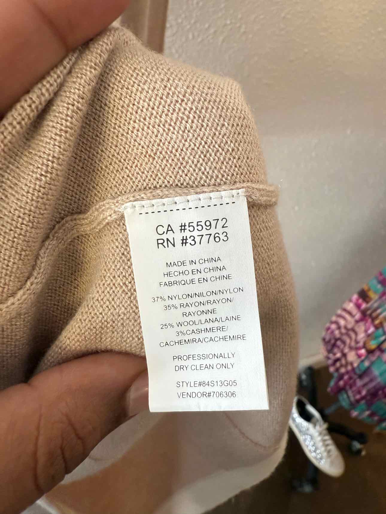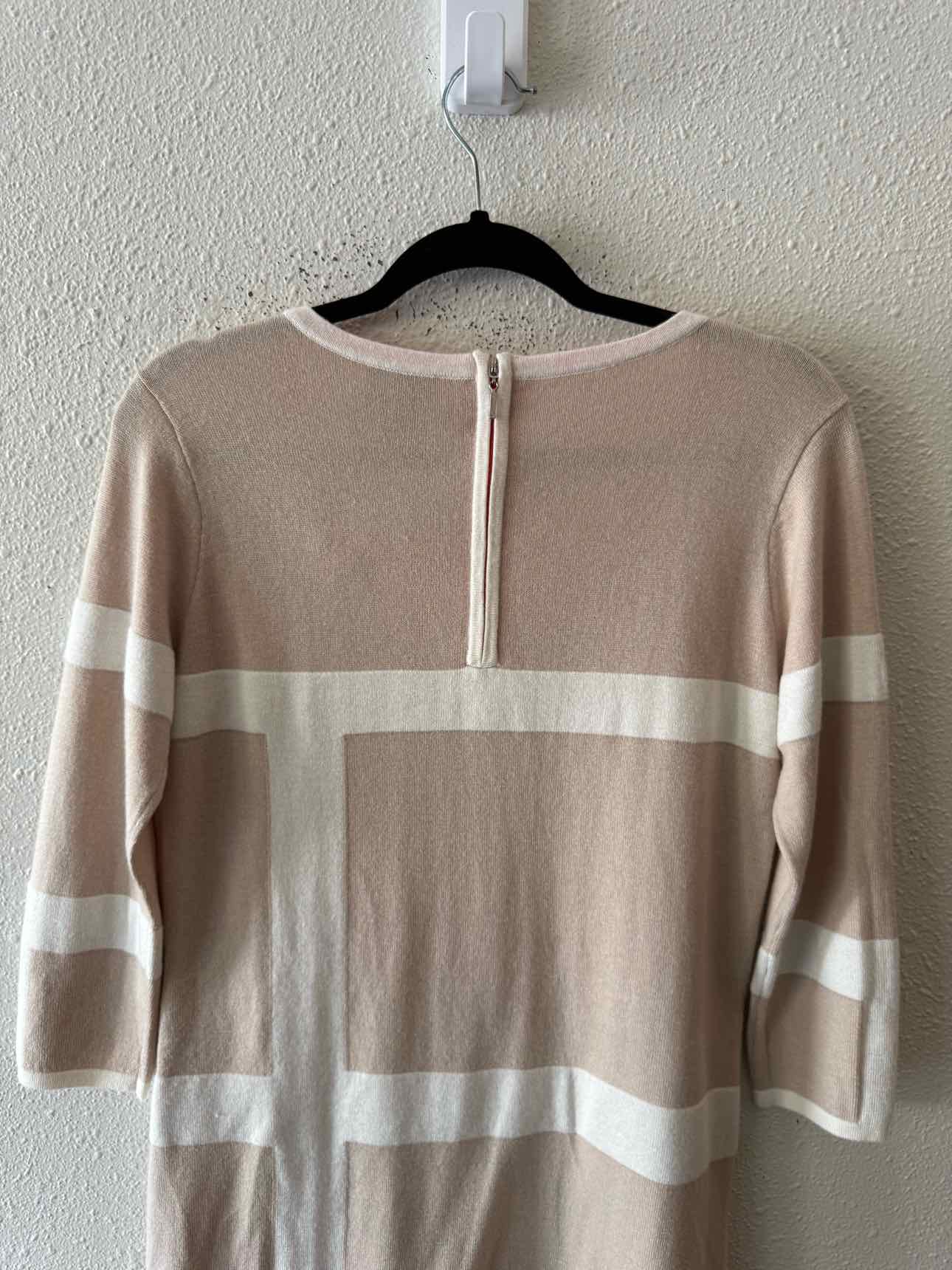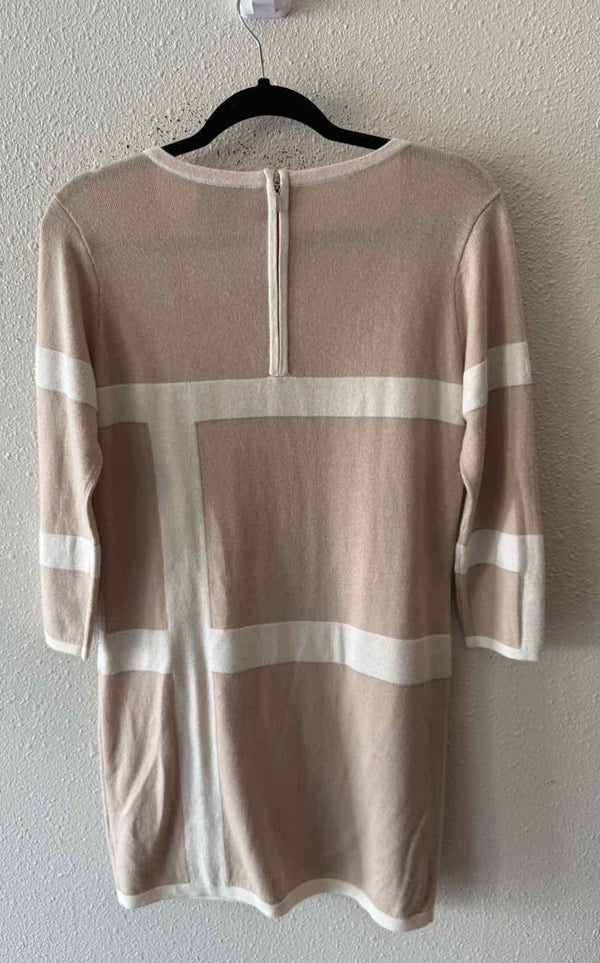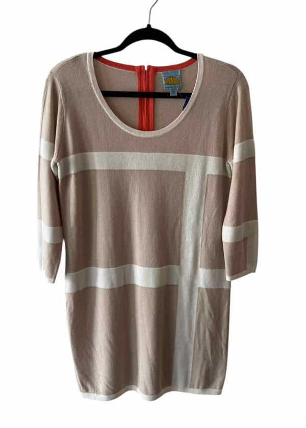 The color palette of the CC California Beige Multi Size S Dress brings a refined touch to women's consignment fashion. Soft beige tones are accented by cream and orange line designs, creating a distinctive look for authentic luxury resale. Crafted from a luxurious blend of wool and cashmere, this pre-loved designer sweater dress features a long sleeve silhouette, a low round neckline, and a convenient back zipper closure. Presented in very good condition, it’s a polished choice for anyone seeking unique, curated pieces. Discover the value of authenticated pre-owned style with this versatile dress, sourced directly from New Orleans.