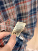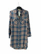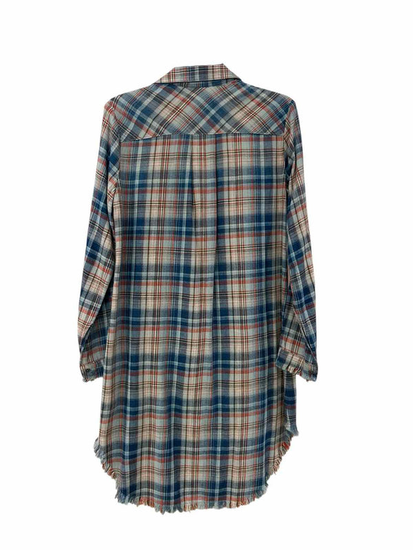 NWT, l/s, mini, plaid, v-neck, shirt collar, buttons down front, raw hem/cuff