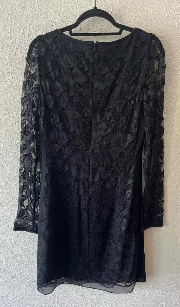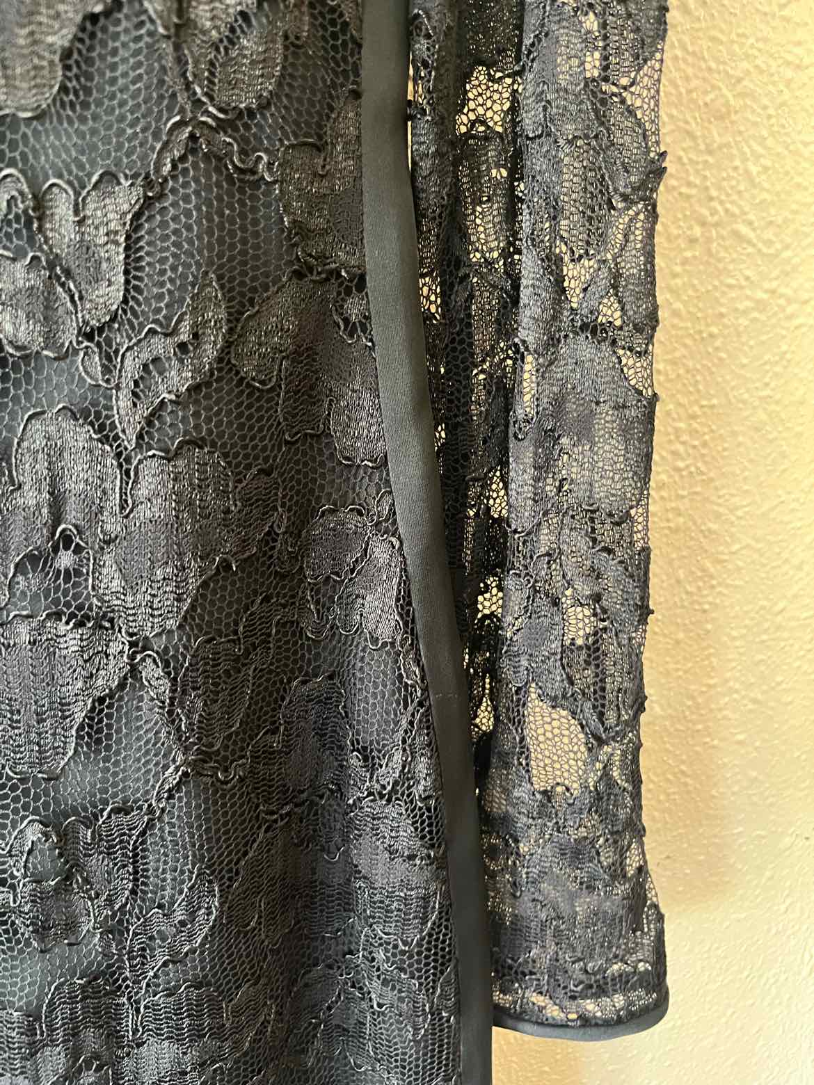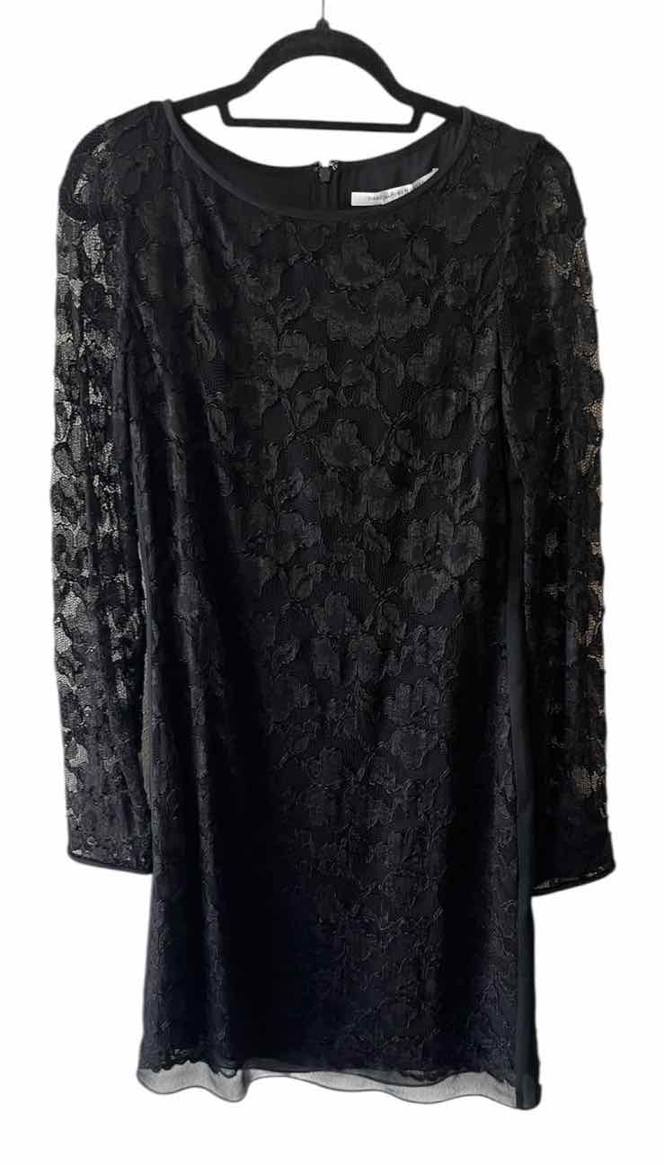 The refined black of the diane von furstenberg Black Size 12 Dress brings a classic touch to any wardrobe, merging luxury with comfort through authentic women's consignment fashion. This pre-loved designer find features a long sleeve, above-knee silhouette in solid black, offering timeless versatility. Crafted with exquisite silk lace and lined for ease, its boat neckline and hidden back zip closure highlight both elegance and practicality. Detailed with silk trim at the cuff and side contrasting silk fabric seams, this Zarita shift dress exemplifies the quality of authentic luxury resale. Enjoy polished style and enduring craftsmanship with this beautiful piece.