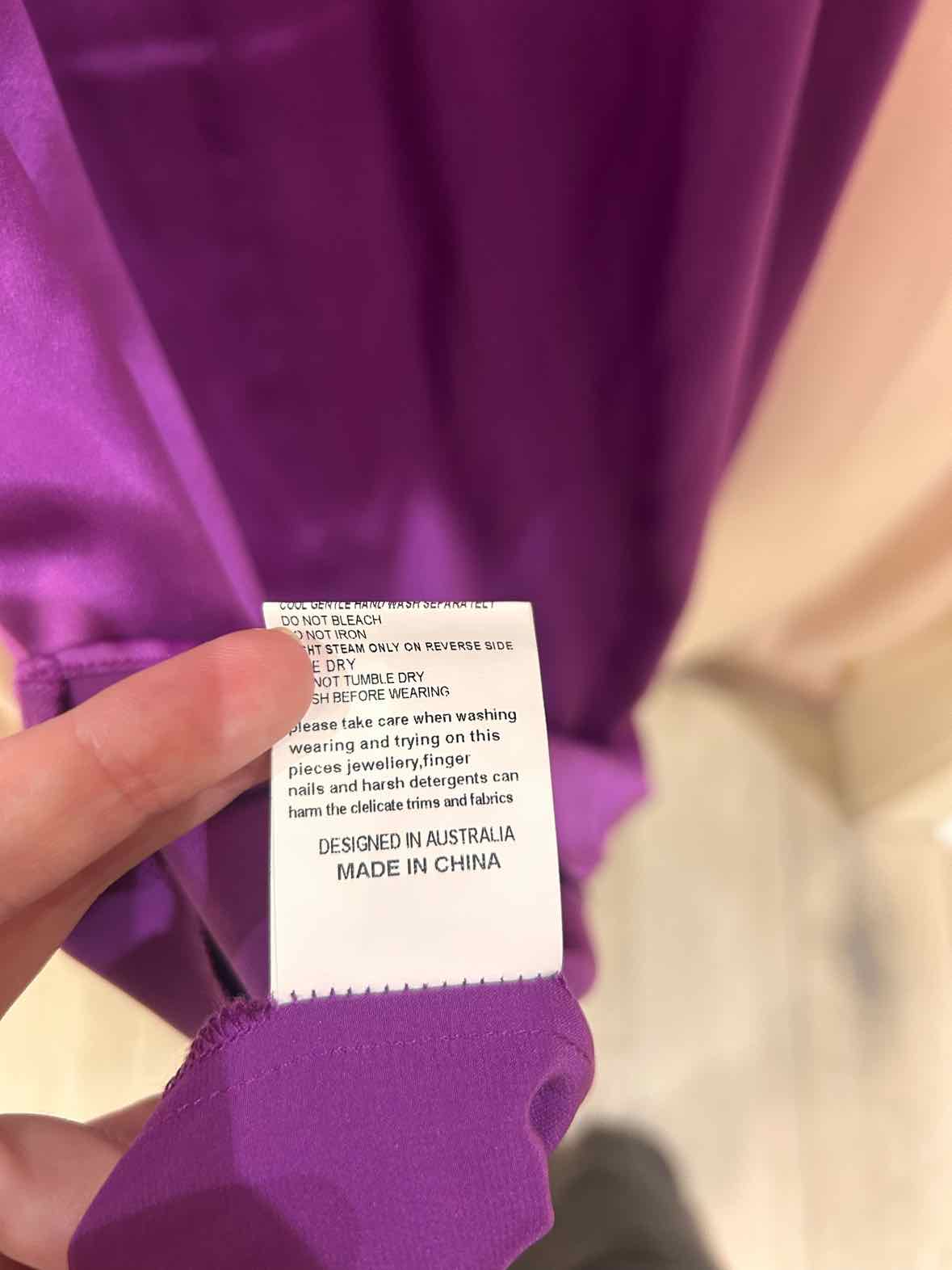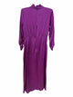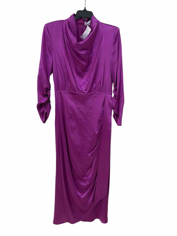 Crafted from luxurious 100% silk, this Eliatt Royal Purple Size L Dress brings refined elegance to women’s consignment fashion. The vibrant royal purple hue, combined with features like a high mock neck, wrap skirt, and distinctive shoulder pads, creates a polished look for authentic luxury resale shoppers. With ruching on the sleeves and an ankle-length silhouette, this pre-loved designer dress offers a beautiful blend of texture and modern tailoring. New with tags and carefully curated, it’s a striking choice for those seeking a unique addition to their wardrobe.