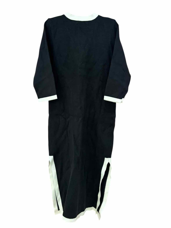 The color-blocked design of this English Factory Black and white Size S Dress brings a distinctive touch to authentic luxury resale. Featuring a black knit maxi silhouette with crisp white trim, this pre-loved designer piece offers a refined blend of contemporary style and classic details. The v neckline with a white tie accent, faux white buttons, and gold hardware on the pockets highlight its polished appeal. Carefully curated through women’s consignment fashion, this dress is made from a rayon blend for comfort and versatility. Experience the unique elegance and quality that English Factory delivers in every piece.
