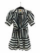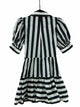 quarter sleeve, puff sleeve, vertical lines, plunging v-neck, mini, tie
