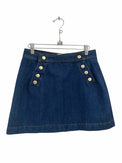 mini denim skirt, gold buttons sailor-like