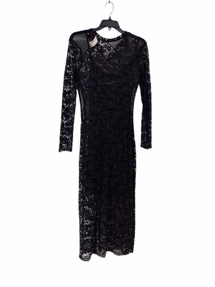 l/s, round neck, lace outer shell, black slip dress, keyhole back closure, slip in back