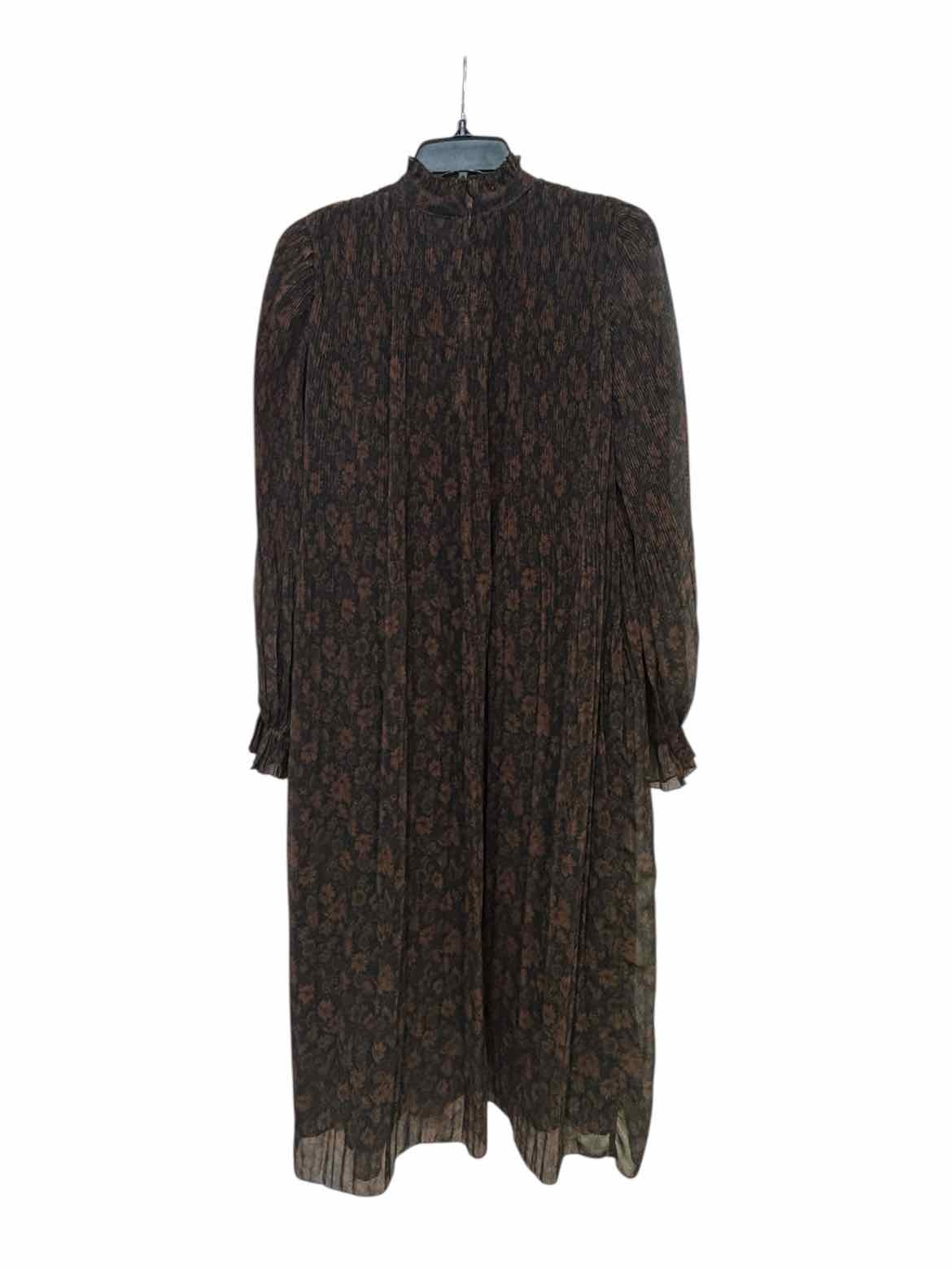 The black and brown tones of this Ganni black/brown Size 36 Dress bring a refined edge to your wardrobe, making it a notable choice in authentic luxury resale. Crafted from lightweight, chiffon-esque polyester, this pre-loved designer piece features sheer sleeves, a high ruffle mock neck, and elegant pleating along the bodice. Ruffled cuffs and a flowing maxi length offer a distinctive silhouette ideal for women’s consignment fashion enthusiasts seeking unique details. Discover carefully curated style from Ganni, designed to complement your collection with versatile texture and timeless design.