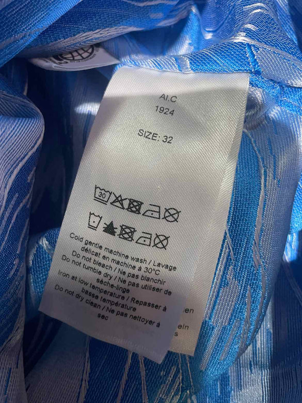 Featuring a playful mini silhouette and an elastic waist, the Ganni Blue Size 32 Skirt brings a refreshing touch to any women's consignment fashion collection. The distinctive bubble style pairs beautifully with its eye-catching blue hue and metallic brushstroke pattern, making it a notable find in authentic luxury resale. Crafted from 100% polyester, this pre-loved designer skirt effortlessly blends comfort and contemporary flair. Sourced from Baton Rouge, it represents the blend of quality and style that defines curated pre-owned fashion. Discover a unique piece that enhances your wardrobe with both character and charm.