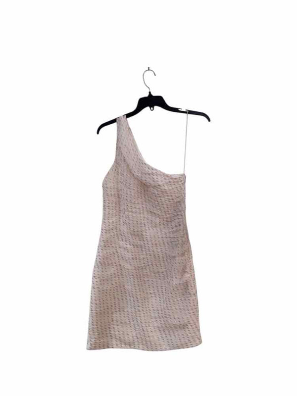 NWT mini length, one shoulder, multi color shimmery designs throughout, zipper on side