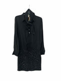 The black-on-black design of the haute hippie Black Size S Dress brings a chic edge to pre-loved designer style. This authentic luxury resale find combines a sequin skirt with a skirt/blouse sewn-together construction, giving the look of coordinated separates in one polished piece. The long sleeve mesh see-through blouse adds a distinctive touch, finished with a sharp collar, buttons, and a tie around the neck. Crafted from a silk/rayon blend, this dress reflects the appeal of women’s consignment fashion while offering remarkable texture and detail in a Size S silhouette.