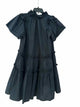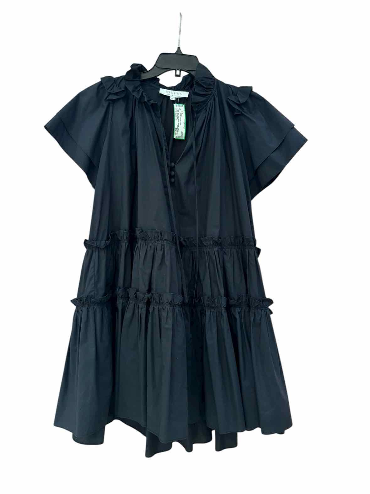 The black hue of the Hunter Bell Black Size M Dress adds a touch of timeless elegance to your women's consignment fashion collection. This pre-loved designer piece is part of our authentic luxury resale selection, offering a chic mini silhouette with shirt sleeves, a V-neckline, and ruffled detailing around the neck finished with a string tie. The loose fit and tiered pleat skirt create a relaxed yet polished vibe, while the little button down opening on the front adds a subtle, refined detail. Made from polyester and curated in size M, this dress is ready to refresh your wardrobe with unique designer style.
