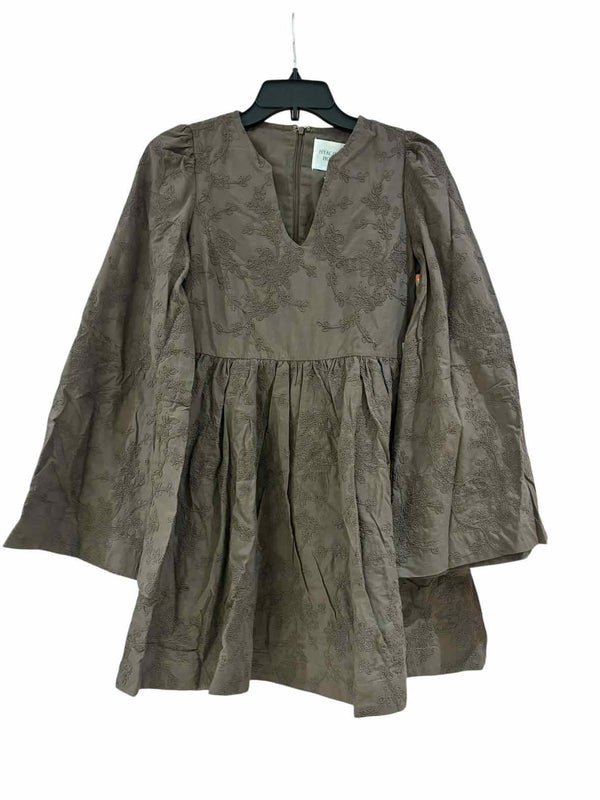 The brown hue of the Hyacinth House Brown Size XS Dress brings warmth and versatility to your wardrobe, while its 3D floral embroidery adds a striking, textured detail. Designed for authentic luxury resale and women's consignment fashion, this pre-loved designer piece features a v-neckline, long flared sleeves, and a mini silhouette for a polished look. The back zipper ensures a tailored fit, and with its new-with-tags condition, you’ll enjoy both quality and style. Carefully curated for those who appreciate unique details and refined craftsmanship, this dress is a remarkable find for any collection.
