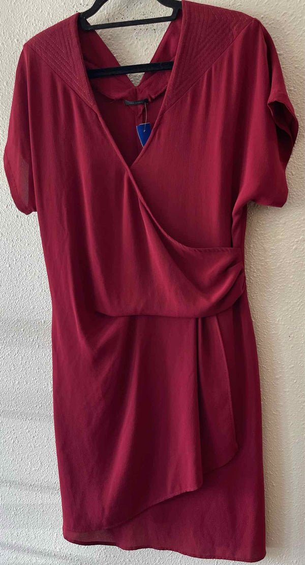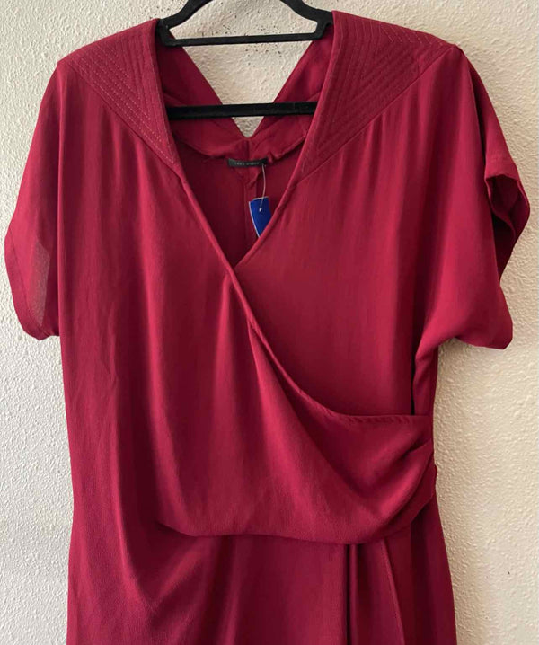 The rich garnet hue of the IKKS Women Garnet Size 38 Dress brings a touch of refined color to any curated wardrobe. This pre-loved designer piece, offered through authentic luxury resale, features an above-the-knee draped sheath silhouette with cap sleeves, a V-neckline, and seam detail shoulder pads for a tailored finish. Its draped and gathered bodice, hidden side zip closure, and full lining reflect the quality found in contemporary women’s consignment fashion. New and in pristine condition, this dress is a distinctive addition for those who appreciate both style and substance in their collection.