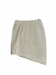High waist mini, asymmetrical hem, pull on, ruched at side