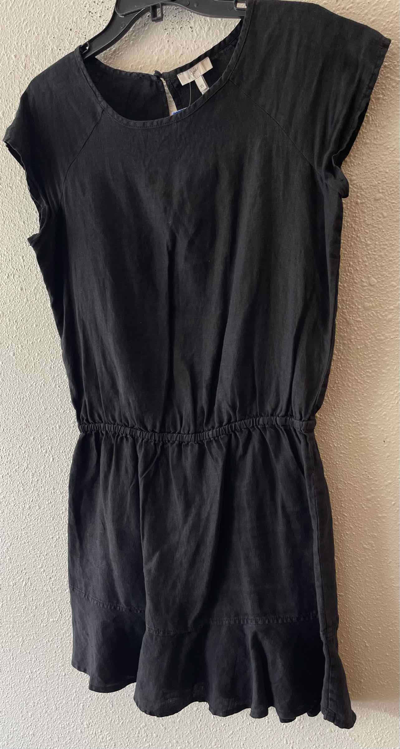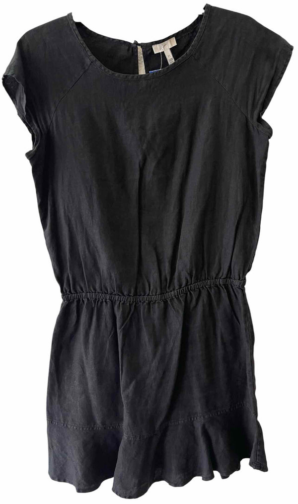 The refined simplicity of the solid black hue brings a touch of chic versatility to the Joie Black Size XS Dress. Made from lightweight linen, this pre-loved designer piece exemplifies authentic luxury resale and women's consignment fashion. The short sleeves, round neckline, and pullover style deliver comfort and ease, while the elastic stretch at the waist and ruffled hem add subtle flair. Finished with a back button clasp and keyhole closure, this mini dress from Joie is in very good condition and ready to complement your contemporary wardrobe with classic appeal.