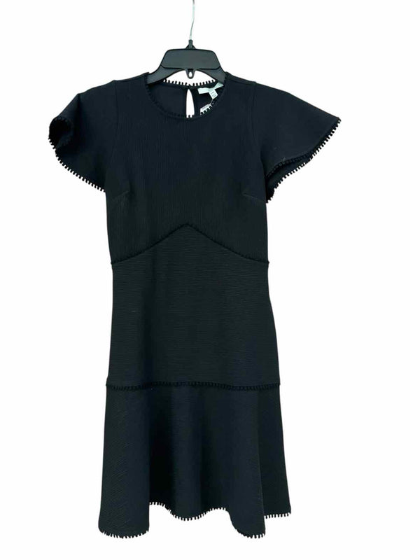 Featuring a chic flared silhouette, the Joie Black Size XXS Dress brings refined detail to your pre-loved designer wardrobe. This authentic luxury resale find showcases a round neckline and mini dot cutouts along the hem, adding unique texture and visual interest. The textured design across the chest and back button closure combine for a polished, tailored finish. Crafted from a poly blend in timeless black, this women's consignment fashion piece is ideal for those seeking elevated everyday style with a touch of designer heritage. Discover the charm of high-quality consignment fashion with this notable Joie dress.