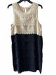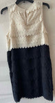 NWT,sleeveless,crew neck,above knee,white,black,Laurette embroidered lace sheath dress,back keyhole button closure,lined