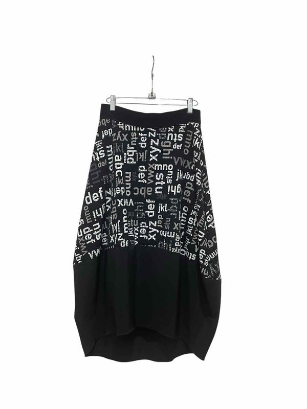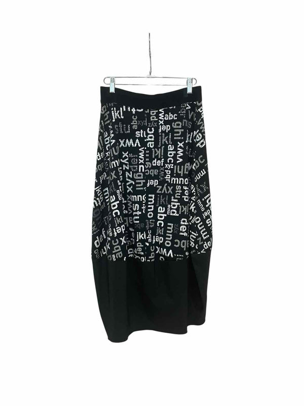 NWT-midi, high-low hem, thick black elastic waist, black and white letter print