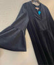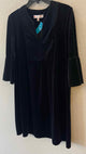 quarter sleeve,v spilt neck,above knee,solid black,Kerry velvet shift dress,ruffle cuff bell sleeve,on seam pockets