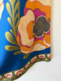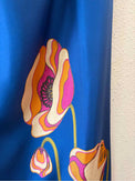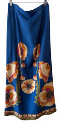Midi blue with multi color floral print, silk slip skirt