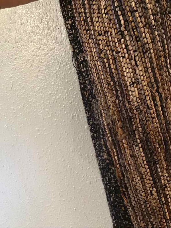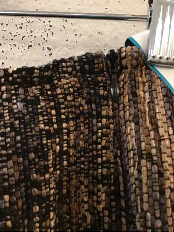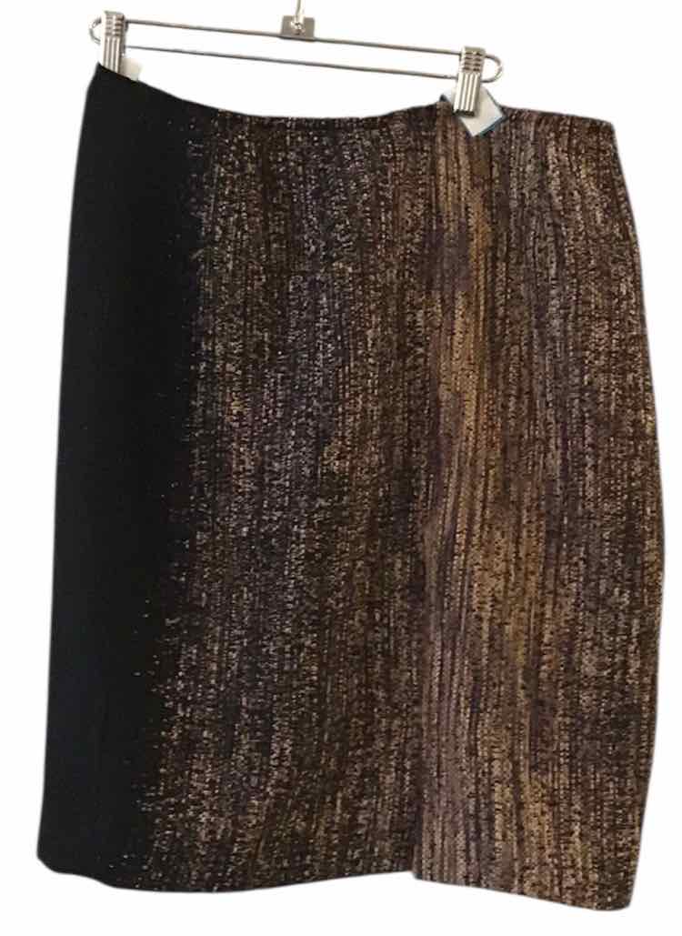 Color/pattern focus: The Black Multi tweed of the Lafayette 148 Black Multi Size 10 Skirt brings rich texture and dimension to your pre-loved designer wardrobe. Crafted in a black knit wool blend pencil silhouette with a multicolored textured woven tweed design, it blends camel brown, blush, dusty violet, dark purple, light brown, and gold for a distinctive look in women’s consignment fashion. The mid to high rise, back zip, and back slit add a polished finish, while its very good condition underscores the value of authentic luxury resale. A note for minor pilling on the side keeps this chic piece transparent and true to its description.