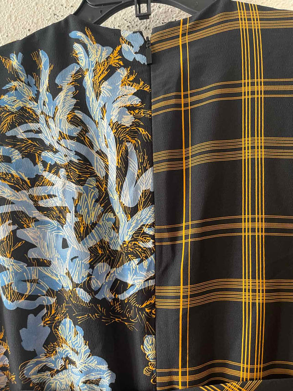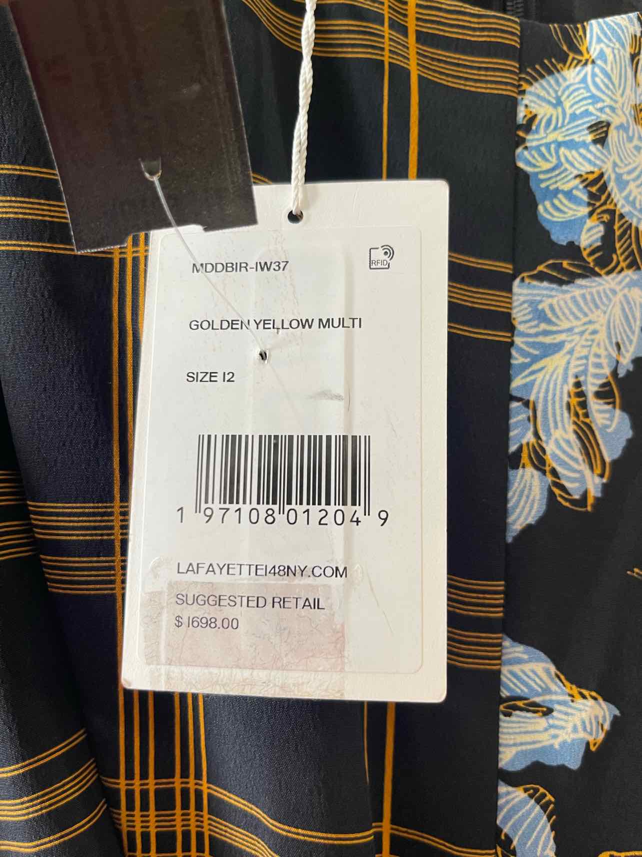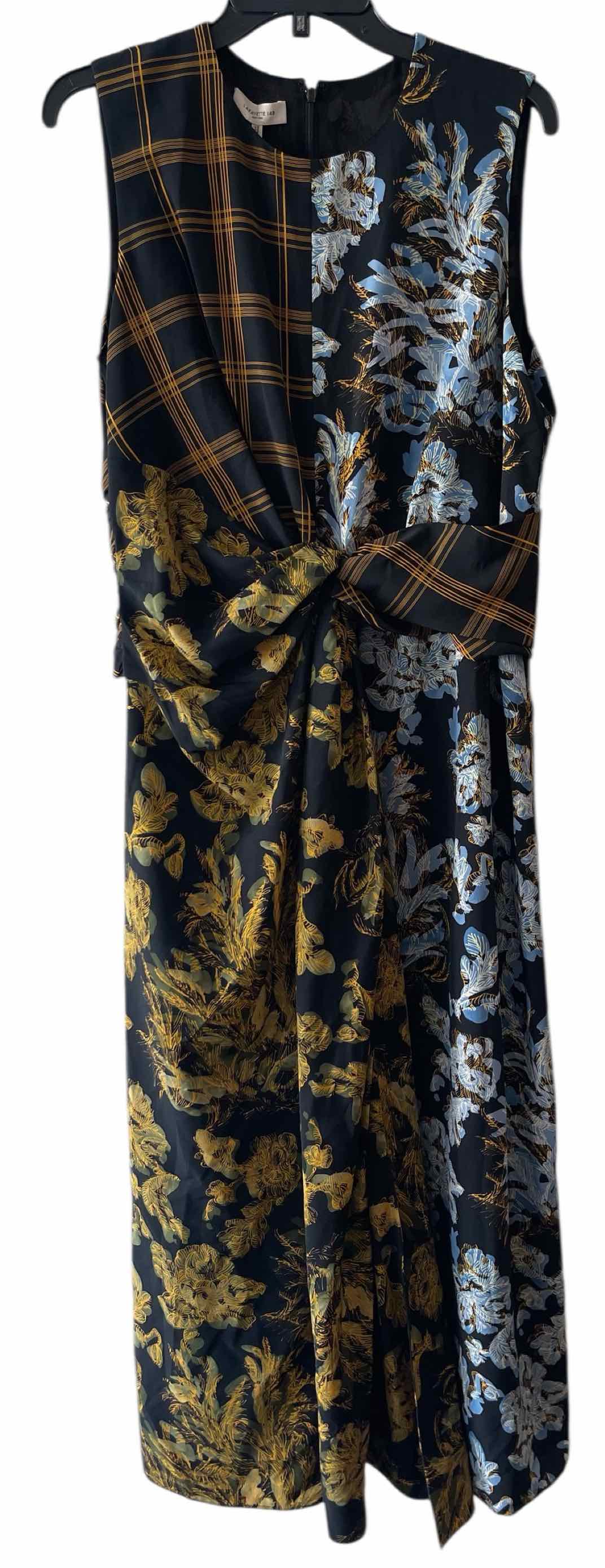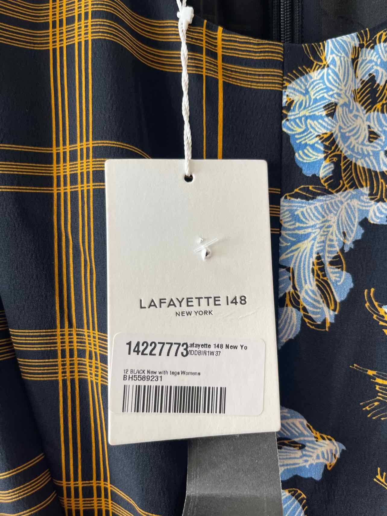 The navy multi palette of the Lafayette 148 navy multi Size 12 Dress brings together blue, white, green, and gold in a remarkable abstract floral and plaid pattern, creating a unique visual effect. This pre-loved designer piece, offered through authentic luxury resale, features a sleeveless midi silhouette and an elegant twist waist detail that adds a tailored touch to women's consignment fashion. Presented in new-with-tags condition, this dress provides a refined addition to any wardrobe, blending mixed media artistry with contemporary design. Discover a truly distinctive find curated for discerning style enthusiasts.