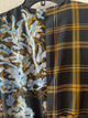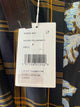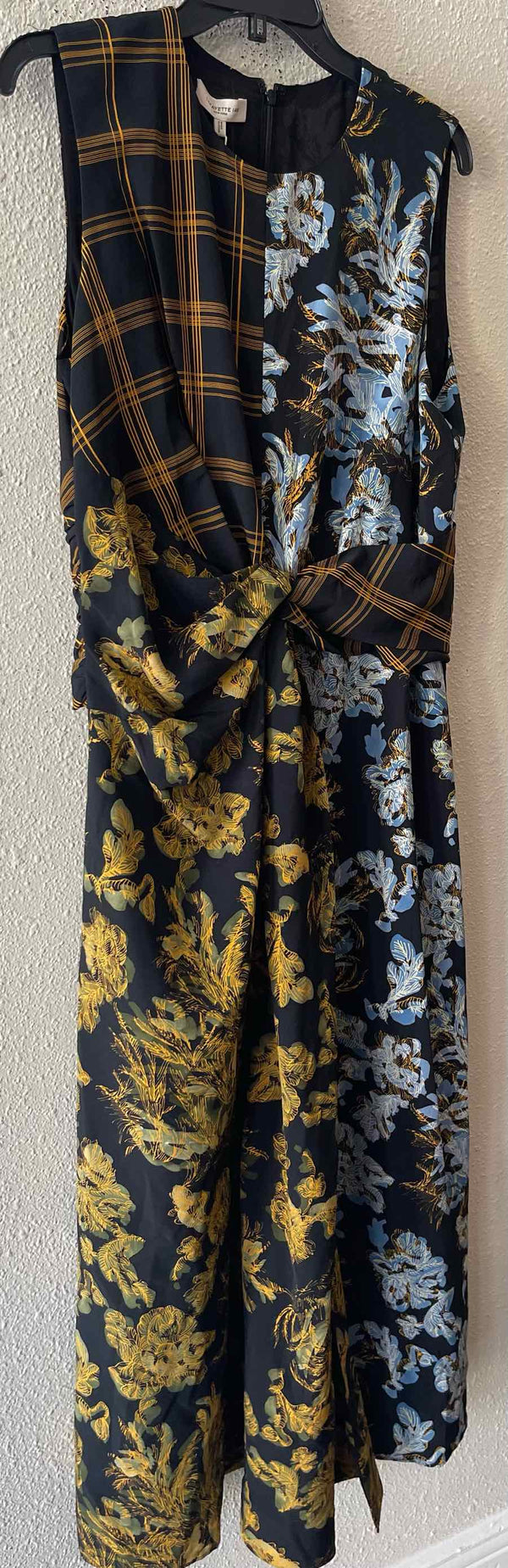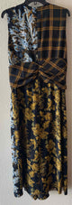 NWT sleeveless midi, navy with blue/white/green/gold abstract floral/plaid mixed media, twist waist, dress
