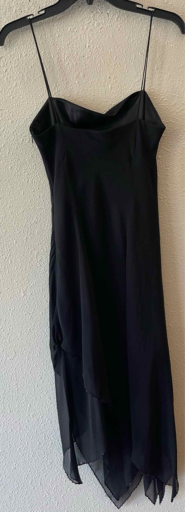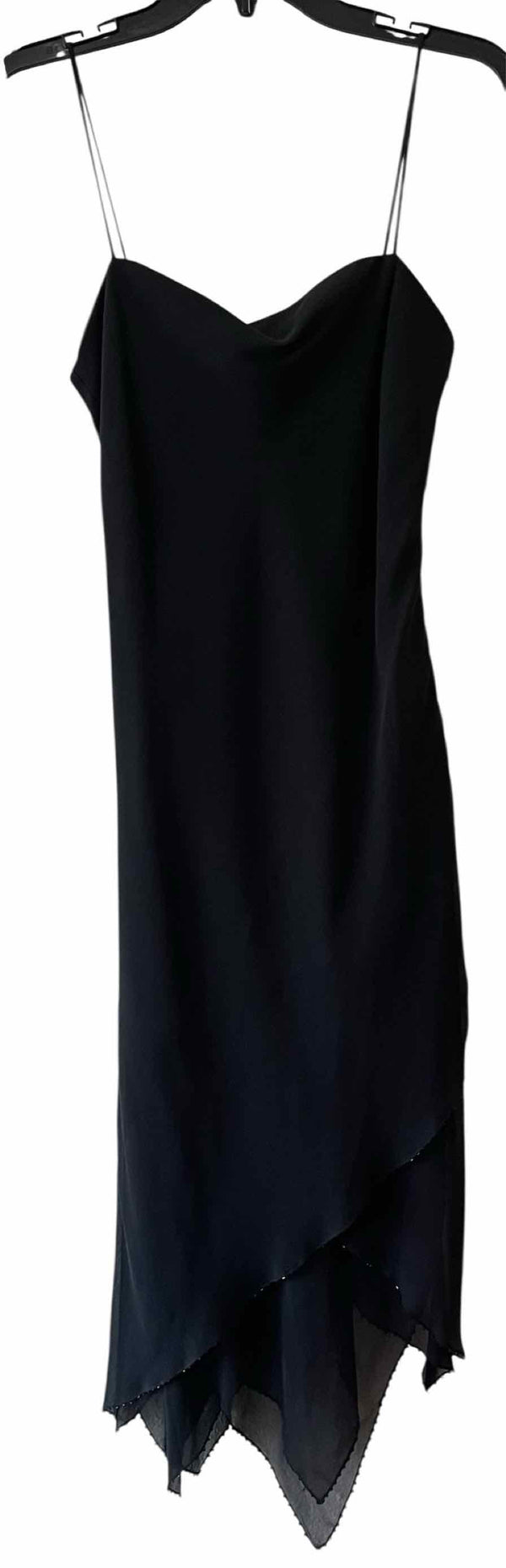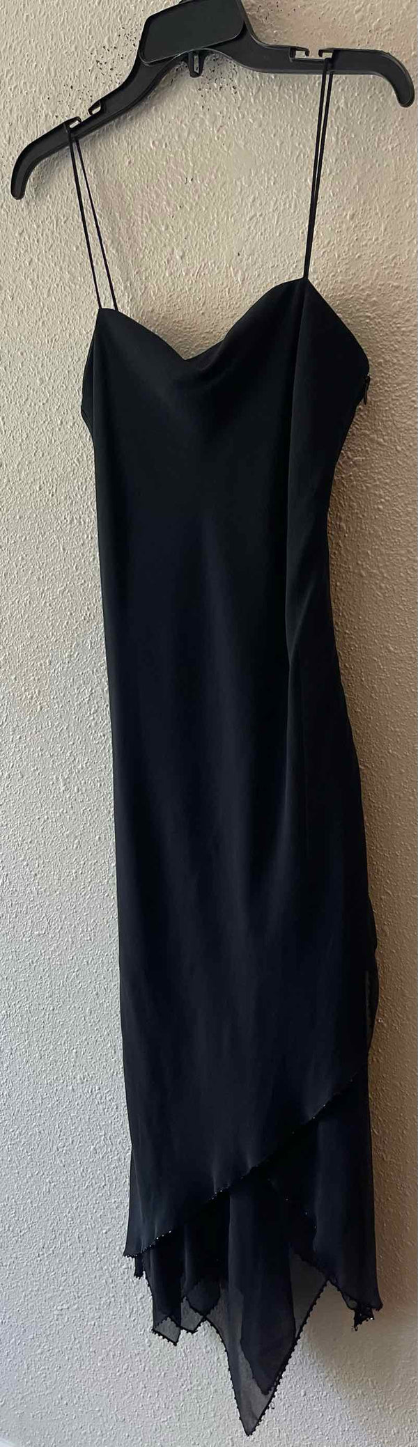 The refined black hue of the Laundry by Shelli Segal Black Size 6 Dress lends timeless appeal to this pre-loved designer piece, available through authentic luxury resale. Crafted in silk, it features delicate spaghetti straps and an asymmetric midi silhouette, highlighted by a beaded trim at the tiered hem. This women's consignment fashion find arrives new with tags, offering you a polished and distinctive addition to your wardrobe. With its elegant design and quality construction, this dress embodies both sophistication and versatility for the contemporary woman seeking unique value.