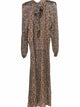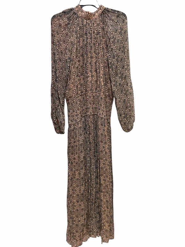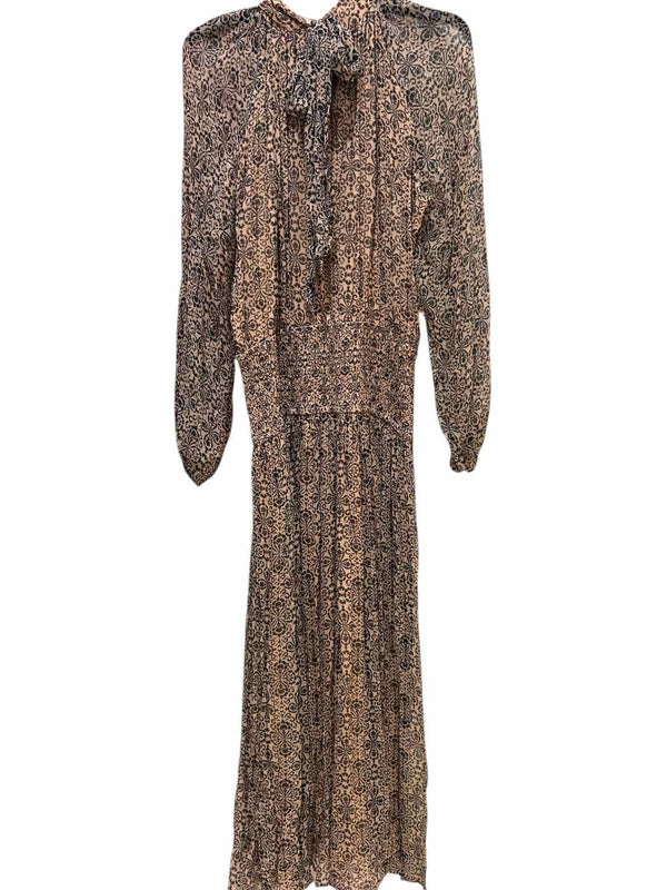 The brown and black palette of the let me be Brown/Black Size M Dress brings a chic, versatile look to any pre-loved designer wardrobe. This authentic luxury resale piece is crafted for women who appreciate elevated details, featuring a maxi silhouette, long sheer sleeves, and a distinctive drop waist. The mock neck with a back tie and smocked waistband add a refined touch, while pleating from the neckline delivers graceful movement. Offered through women's consignment fashion, this dress is made from 100% viscose, blending comfort with polished design—an exceptional choice for those seeking both quality and style in their curated collections.