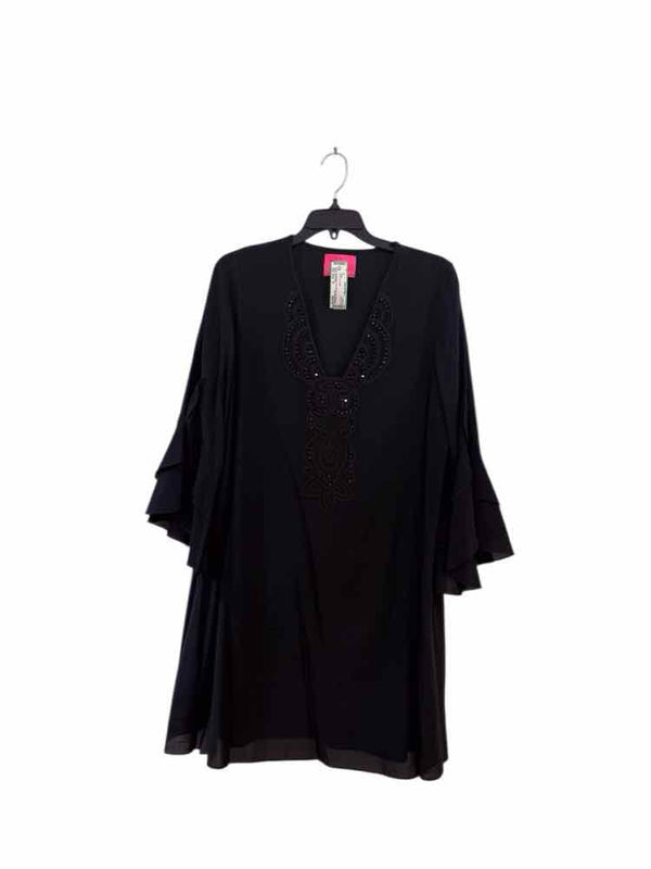 Featuring a chic silhouette, the Lilly Pulitzer Black Size M Dress brings a blend of comfort and style to authentic luxury resale. This pre-loved designer piece offers a mini length and long sleeves, finished in a timeless solid black. Its loose fit and V neckline provide a relaxed yet refined look, while front embellishments add a touch of unique flair to your women’s consignment fashion collection. Carefully maintained and in very good condition, this dress is an ideal addition for those seeking polished versatility through trusted designer resale.