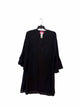 mini length, long sleeve, solid black, v neck line, loose fit throughout embellishments in front