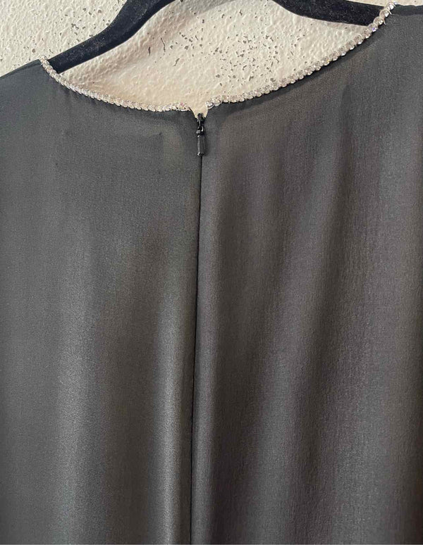 The black hue of this Linda Allard Ellen T. Black Size 12 Dress brings a polished touch to any wardrobe, highlighting the timeless appeal of pre-loved designer fashion. This authentic luxury resale piece is crafted from sheer silk with a pale grey underlay, creating subtle dimension and movement. The long sleeves, mock neck, and padded shoulders deliver a tailored silhouette, while the rhinestone neckline offers a touch of sparkle. Thoughtfully curated for women’s consignment fashion, this dress is in excellent condition and finished with a practical back zip, making it a refined choice for any occasion.