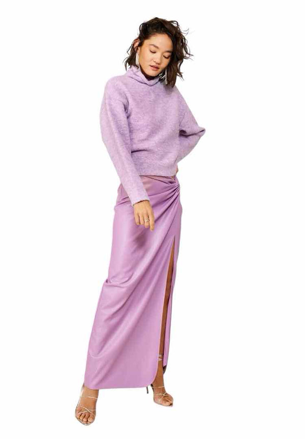 Featuring a chic silhouette, the line and dot Purple Size S Skirt brings modern style to pre-loved designer and women's consignment fashion. Its maxi length, pleather fabric, and ruched detailing create a refined look, while the striking purple hue adds an eye-catching element to your authentic luxury resale wardrobe. The thoughtfully placed slit offers a touch of movement and elegance, making this new-with-tags skirt a unique addition for those who appreciate quality and design. Carefully curated, this piece from line and dot is ready to enhance your collection with its blend of bold color and tailored details.