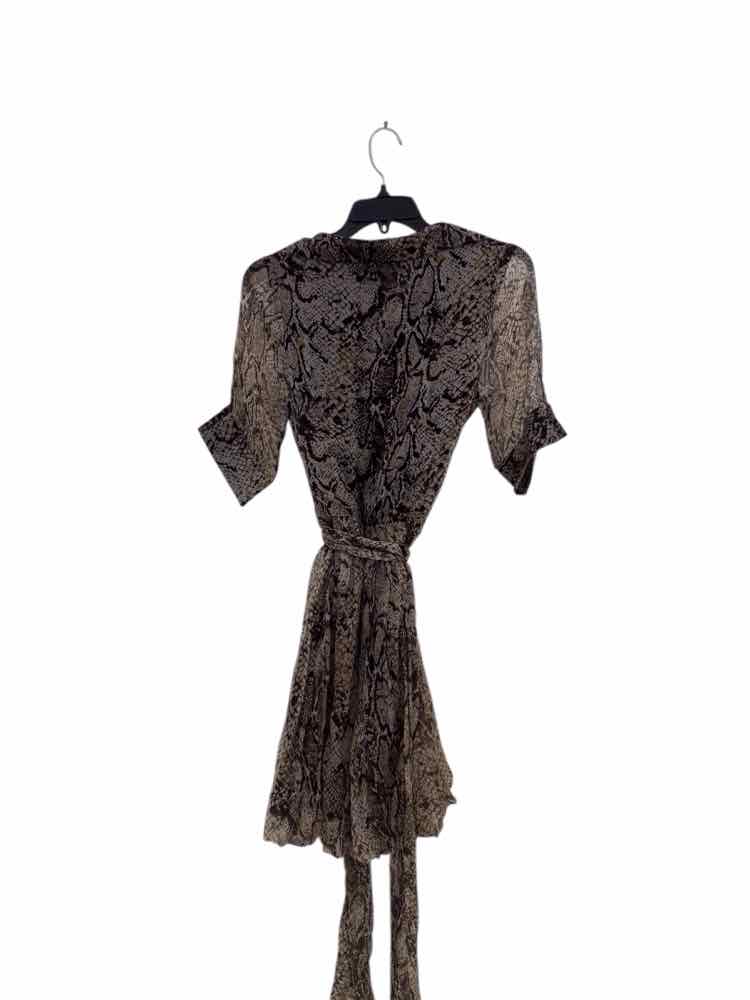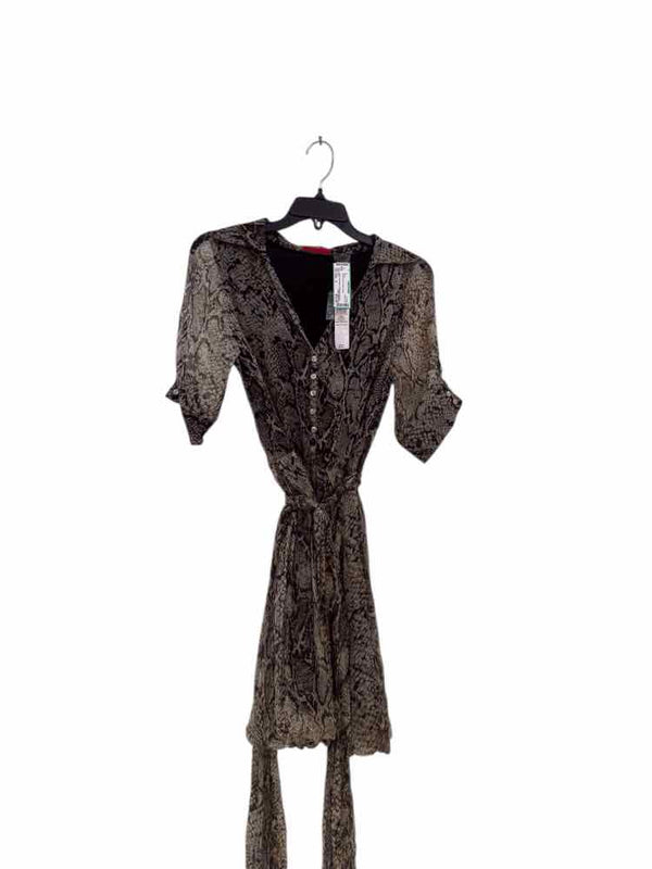 The color and striking snakeskin print of the Linq Brown multi Size S Dress bring a distinctive touch to any curated wardrobe. This authentic luxury resale piece is crafted from a silk blend, offering a flowy fit that moves elegantly with you. Detailed with midi-length sleeves, a fabric waist belt, and front buttons, this pre-loved designer find combines comfort and style for women's consignment fashion lovers. The mini length and subtle animal-inspired pattern make it a versatile option for a range of occasions, while its new-with-tags condition ensures lasting appeal.