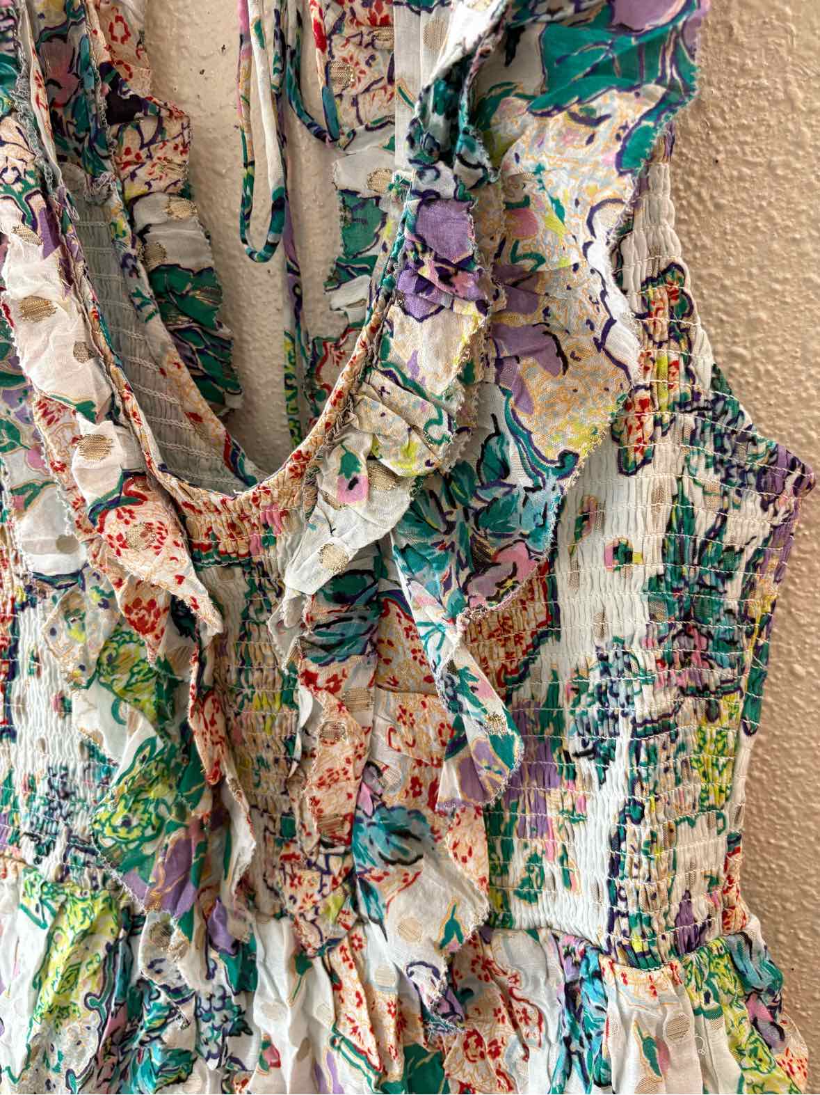 Featuring a playful sleeveless mini silhouette, the Love the Label White Multi Size L Dress brings charm and color to your authentic luxury resale wardrobe. This pre-loved designer piece showcases a white multi floral print, accented by tiered ruffles and a smocked bodice for a flattering fit. As part of our curated women’s consignment fashion collection, this dress delivers a fresh take on feminine style, ideal for those who appreciate both comfort and eye-catching detail. Discover a unique addition to your closet with this notable find, thoughtfully sourced and ready to be enjoyed again.